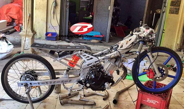 Menariknya, ada perubahan signifikan dalam pacuan yang heboh dengan dua knalpot itu. Ya, mereka mengganti rangka dari yang sebelumnya besi menjadi rangka berbahan Alumunium.