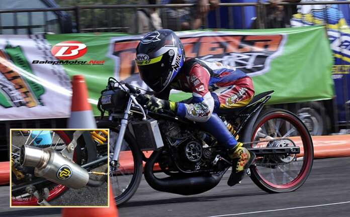 “Knalpot ini iseng saja. Jadi karena ada bahan coba buat seperti ini, ternyata hasilnya lumayan. Kebanyakan ini dipakai untuk motor grasstrack,” jelas manager Adrian Blinks tentang knalpot berlabel “P” itu.