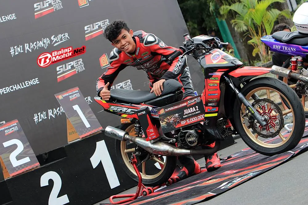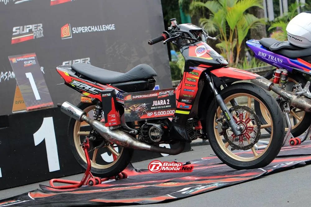 Motor yang dibesut oleh M Robby ini sukses menggapai dua podium runner-up di pertarungan kategori Bebek 2T STD Novice. Menariknya, ini motor 116cc tapi mampu melawan di kelas 125cc.