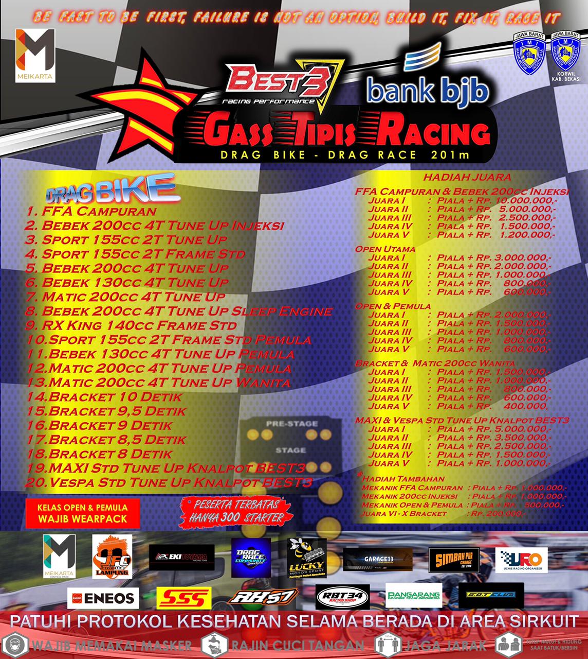 Gass Tipis Racing sendiri memang dalam beberapa tahun ini serius menghajat event balap baik Road Race maupun Drag Bike. Nah, dalam gelaran di Meikarta 4-6 Juni nanti, GTR akan membuka 20 kelas Drag Bike yang digelar pada tanggal 4 Juni dan 19 kelas Drag Race yang digelar pada 5-6 Juni.