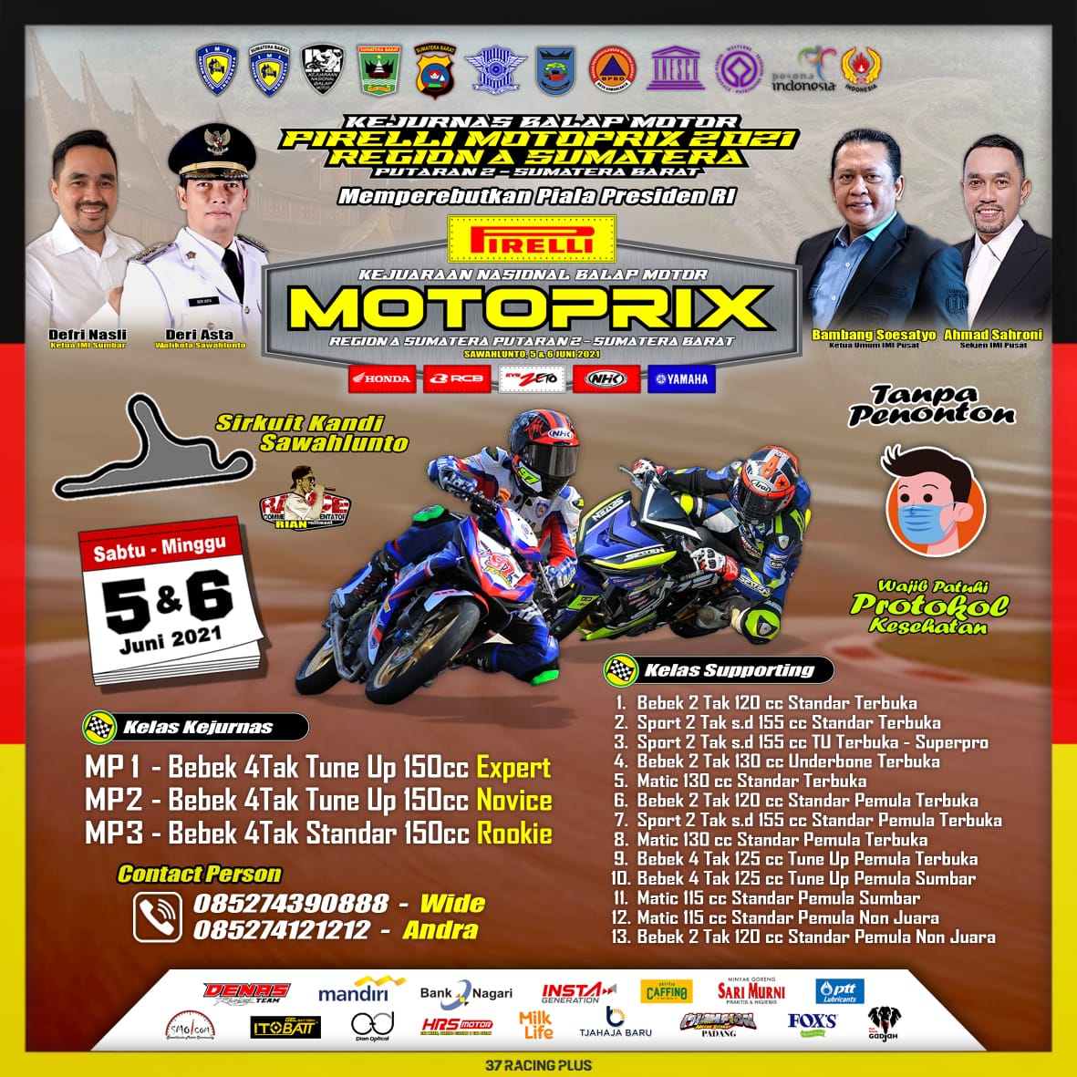 BalapMotor.Net – Gelaran perdana Kejurnas Motoprix Region A, Sumatera musim 2021 akan dihelat pada akhir pekan ini (5-6/5) tepatnya di Sirkuit Permanen Kandi Sawahlunto, Sumatera Barat.