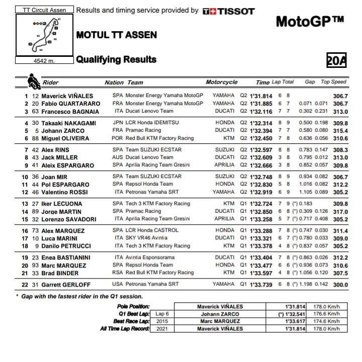 “Assen lebih sulit dari pada Sachsenring untuk motor kami,” kata Zarco yang harus mengawali kualifikasi dari Q1 karena terjatuh saat FP3 sehingga tidak meraih waktu lap yang maksinal.