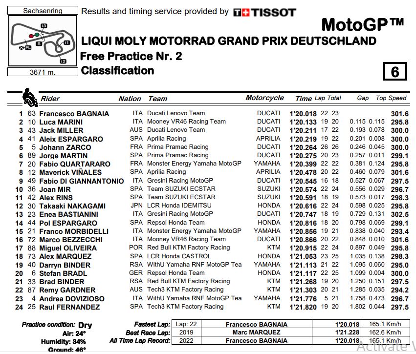 BalapMotor.Net – Fabio Quartararo menempati posisi ketujuh dalam waktu gabungan latihan bebas hari pertama GP Jerman yang berlangsung di sirkuit Sachsenring, Jumat 17 Juni.