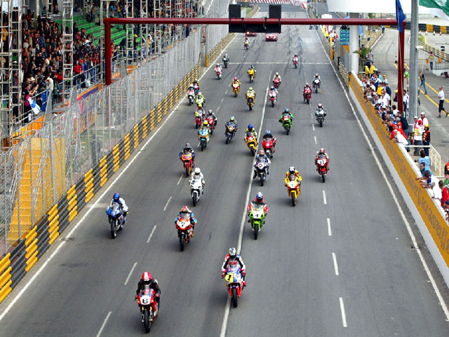 Balapan yang mengambil lokasi dijalan umum yang disulap jadi sirkuit,pokoknya sama kaya di negara tercinta kita ini,cuma kalau dinegara kita balapanya menggunakan bebek goreng eh maksudnya bebek alias underbone,nah kalau di GP Macau balapanya make motor spek Superbike bisa dibayangkan mbok??