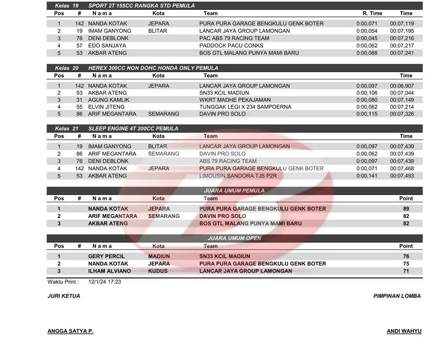 Hasil Drag Bike Open Championship Blitar 1 Desember 2024
