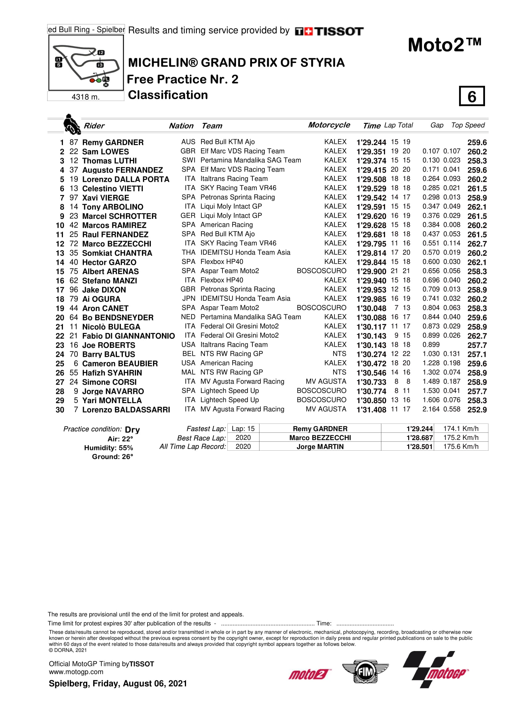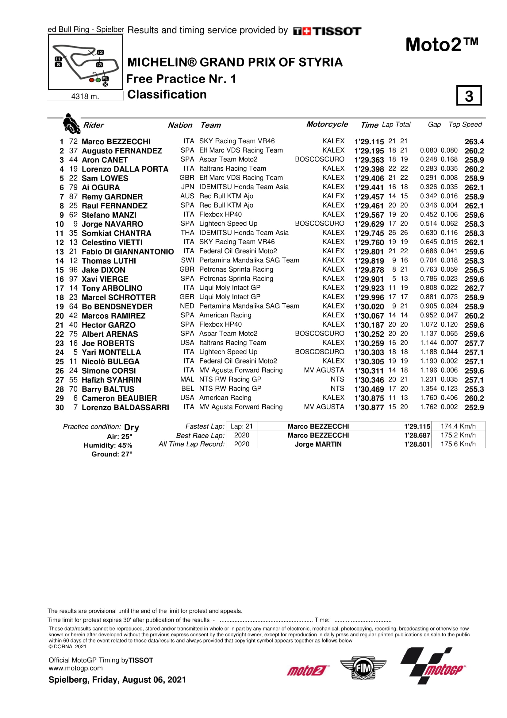 BalapMotor.Net – Berikut merupakan hasil Michelin Grand Prix Of Styria yang berlangsung di sirkuit Red Bull Ring – Spielberg, Austria untuk sesi hari pertama, Jumat 6 Agustus 2021 semua kelas.