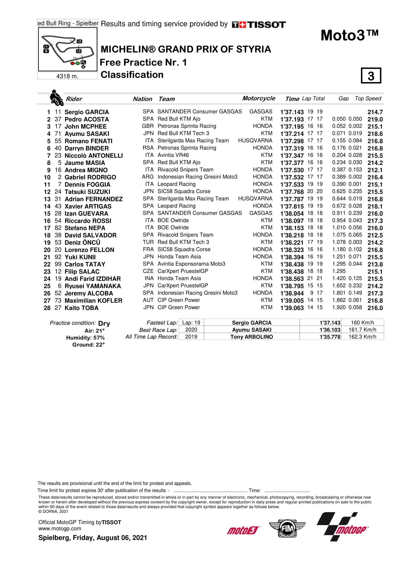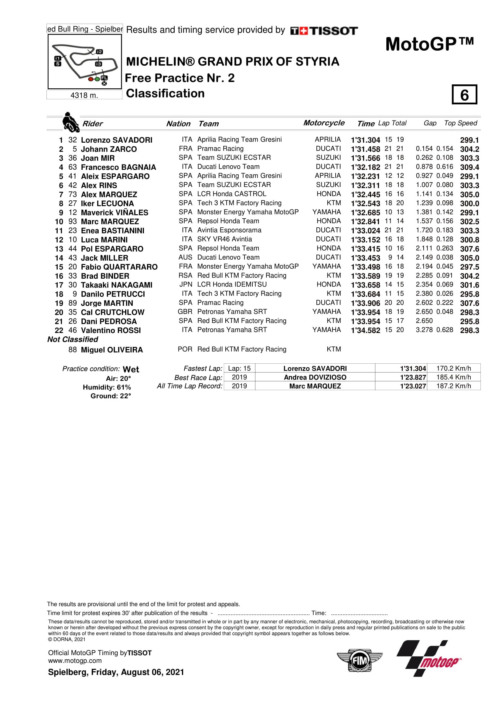 Hasil FP1 dan FP2 MotoGP Styria 2021 Semua Kelas