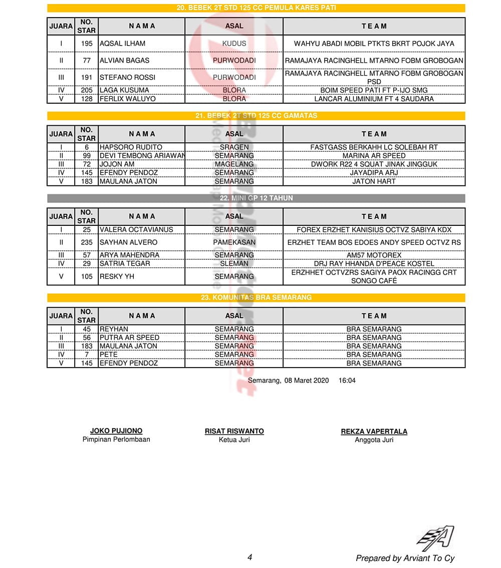 Hasil Gadhuro Road Race Mijen - Semarang 8 Maret 2020 (Seri 1)