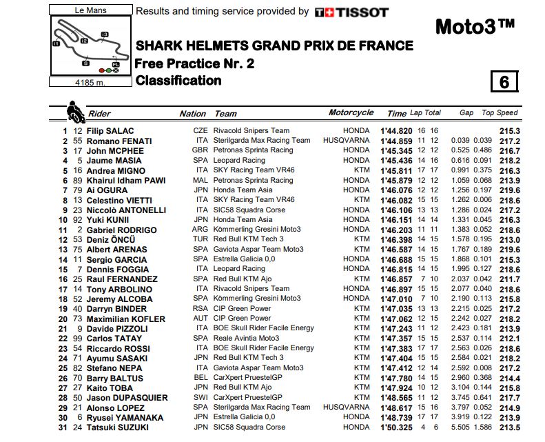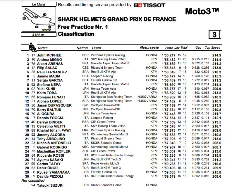 Hasil Hari Pertama Semua Kelas MotoGP Perancis 2020Penulis Fajar Sulistiono - 09/10/2020Hari Pertama MotoGP perancis 2020 |Foto: MotoGP BalapMotor.Net – Berikut merupakan hasil dari hari pertama MotoGP Perancis 2020 yang di isi dengan sesi FP1 dan FP2. MotoGP Perancis 2020 sendiri berlangsung di sirkuit Le Mans, Perancis pada hari Jumat 9 Oktober 2020.FP1 FP2
