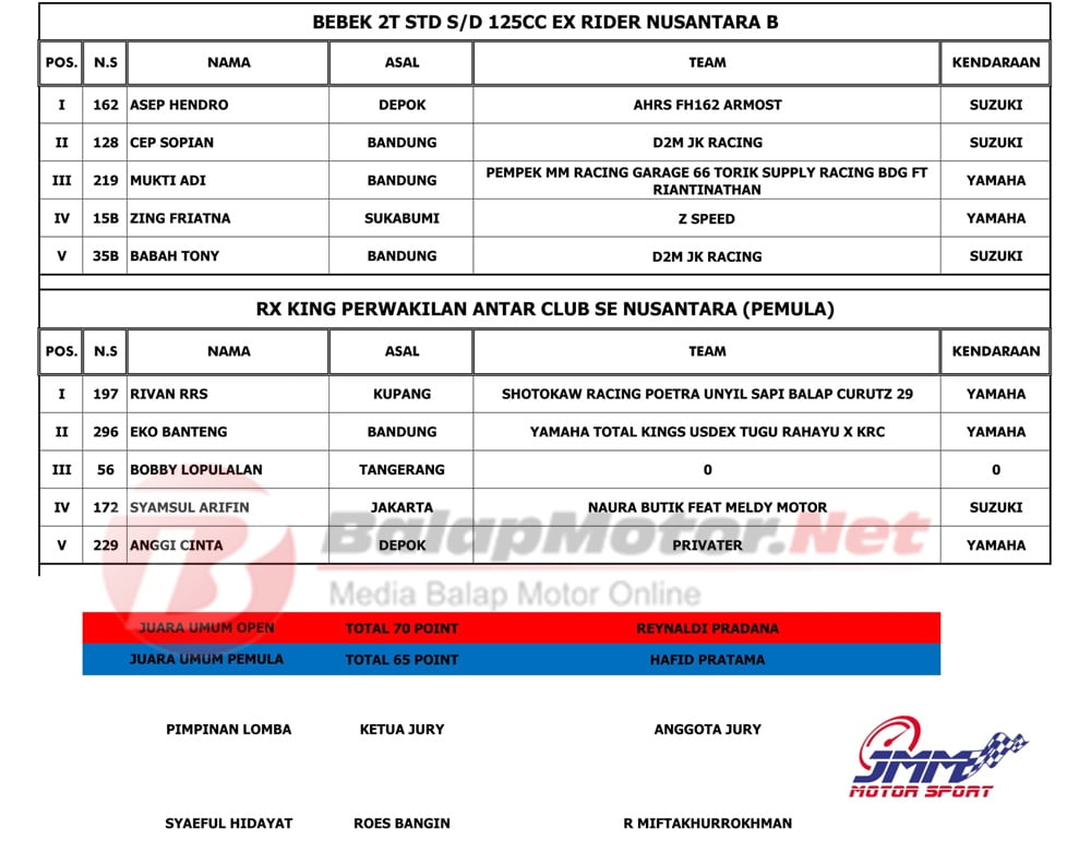 BalapMotor.Net – Berikut kami paparkan hasil lengkap juara dari kejuaraan Indoclub Championship 2020 putaran 1 yang berlangsung di sirkuit Sentul Karting, Bogor, Jabar pada Minggu 1 Maret 2020. | Yugo