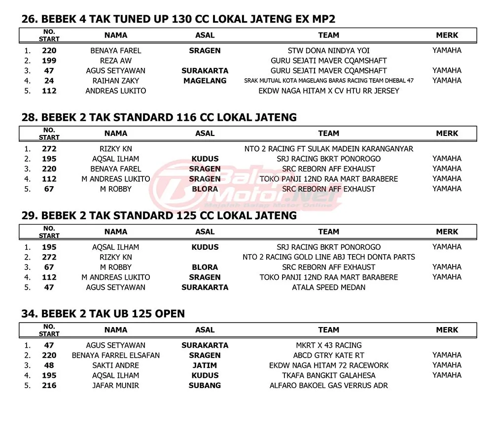 BalapMotor.Net – Berikut merupakan hasil juara dari gelaran balap legendaris VSC Old And New Year Nite Race 2026 yang berlangsung di sikruit NP Stadion Mandala Krida, Yogyakarta pada 31 Desember 2025 – 1 Januari 2026. (**)