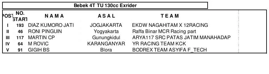 BalapMotor.Net – Berikut merupakan hasil juara di hari pertama Kejuaraan Casytha Manahadap Road Race Championship 2025 putaran pembuka yang berlangsung di sirkuit NP. Alun-alun Blora, Jawa Tengah pada Sabtu 12 April 2025. (**)
