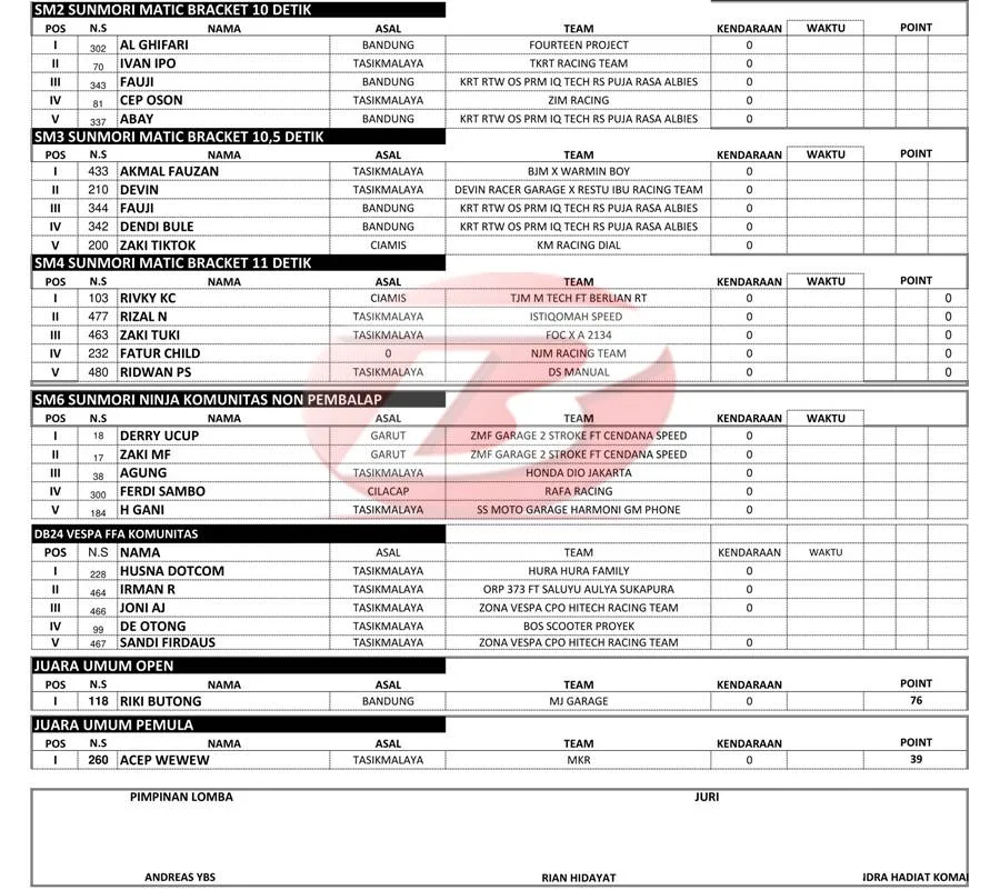 Hasil Juara Drag Bike Danlanud Wiriadinata Tasikmalaya 2024