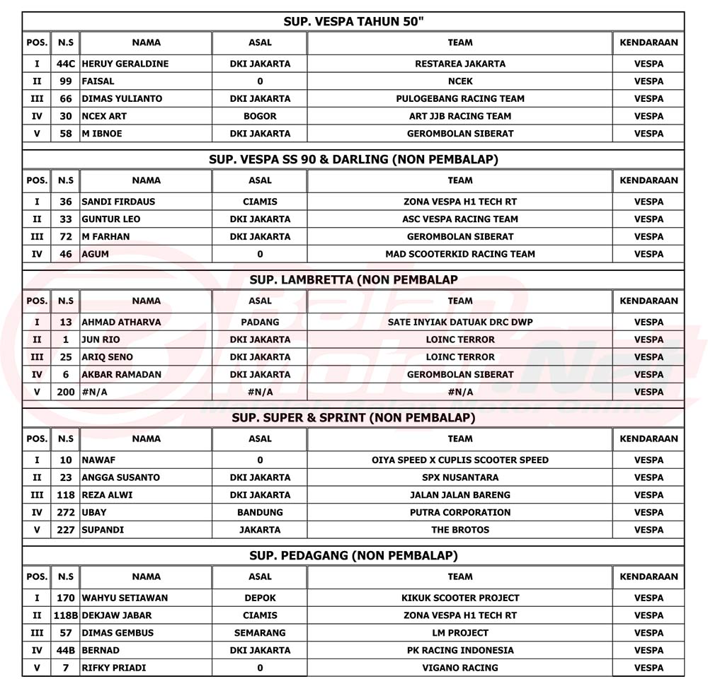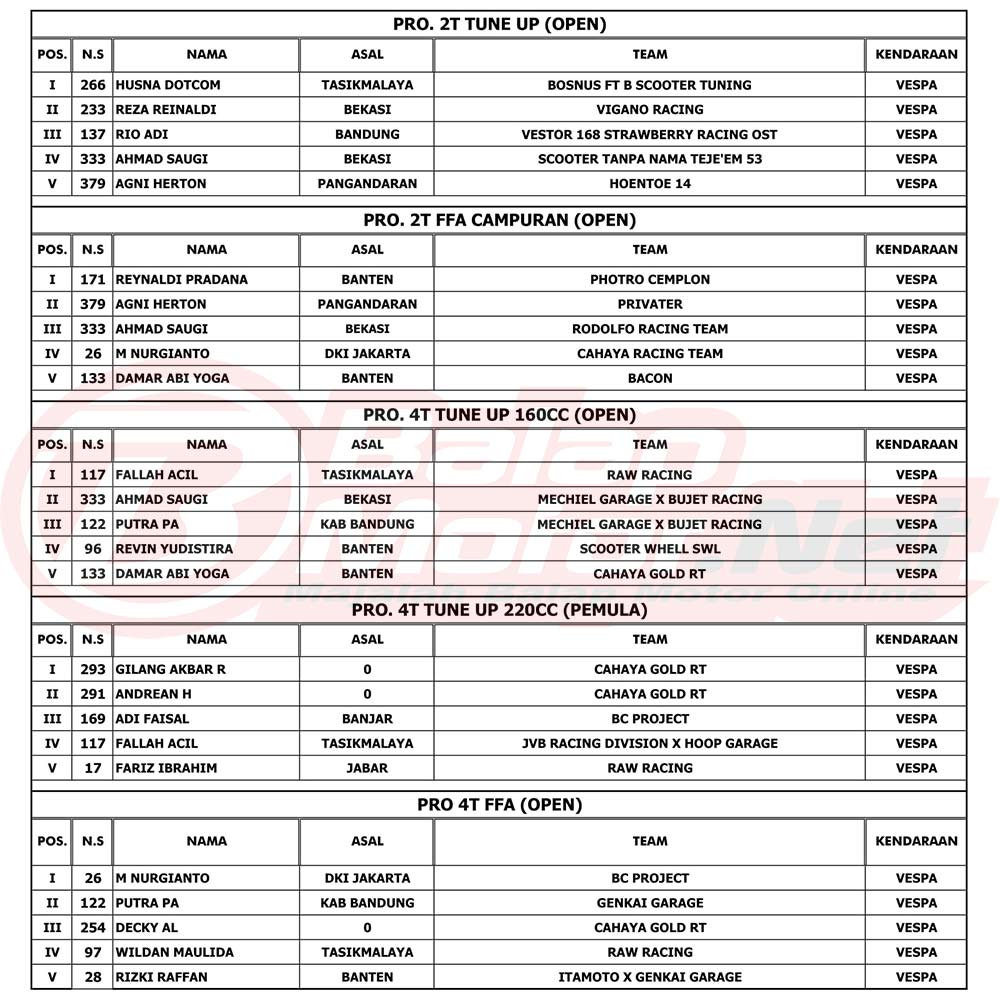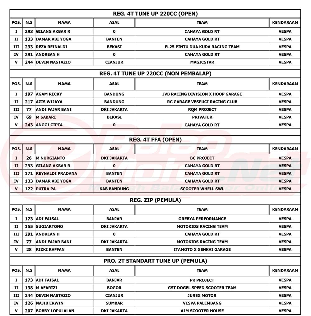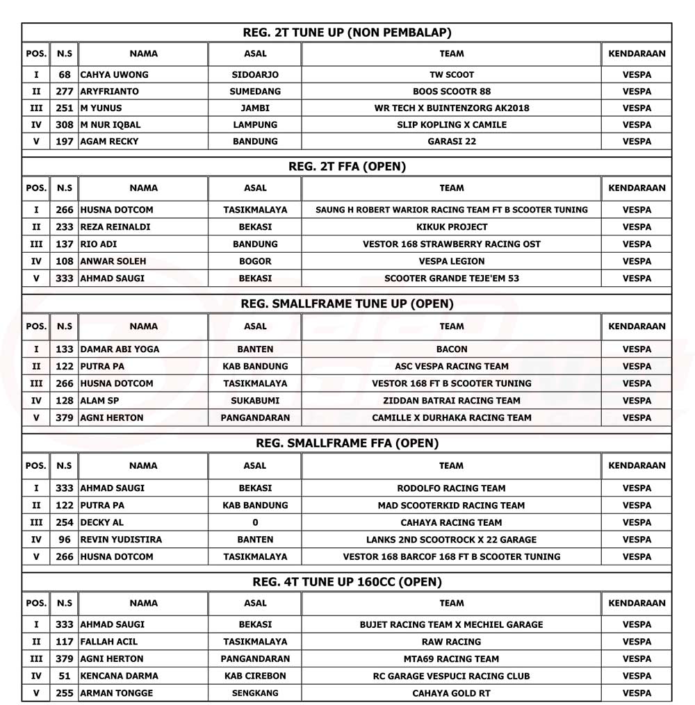 Hasil Juara Final The Broto’s Vespa Race 2022