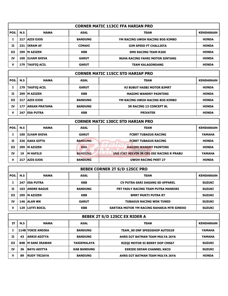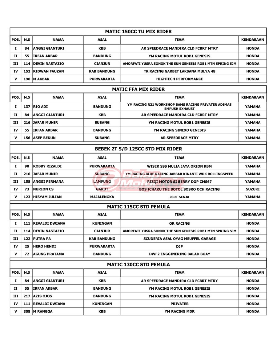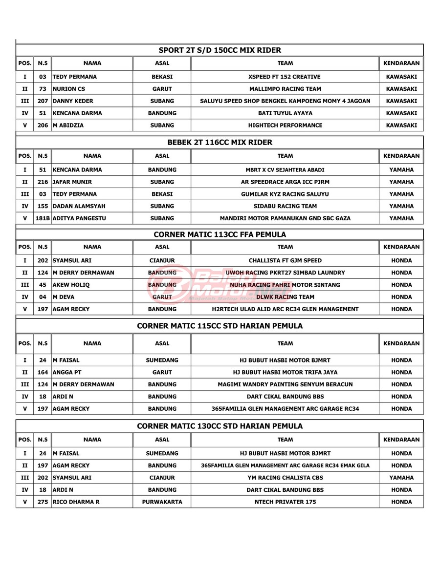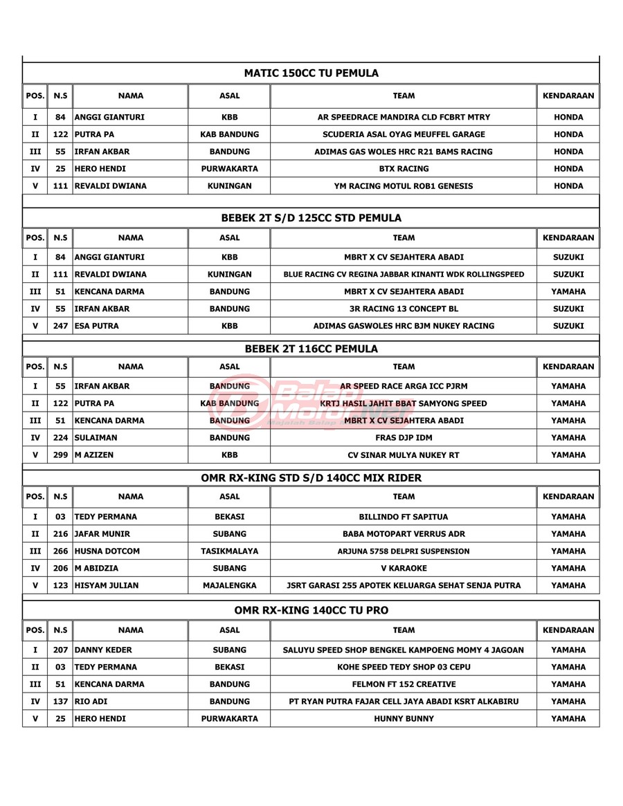 Hasil Juara Jagabaya Championship 2022 RD 2 di Cimahi 15-16 Juli 2022