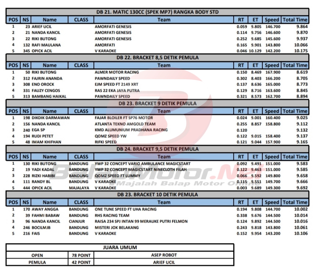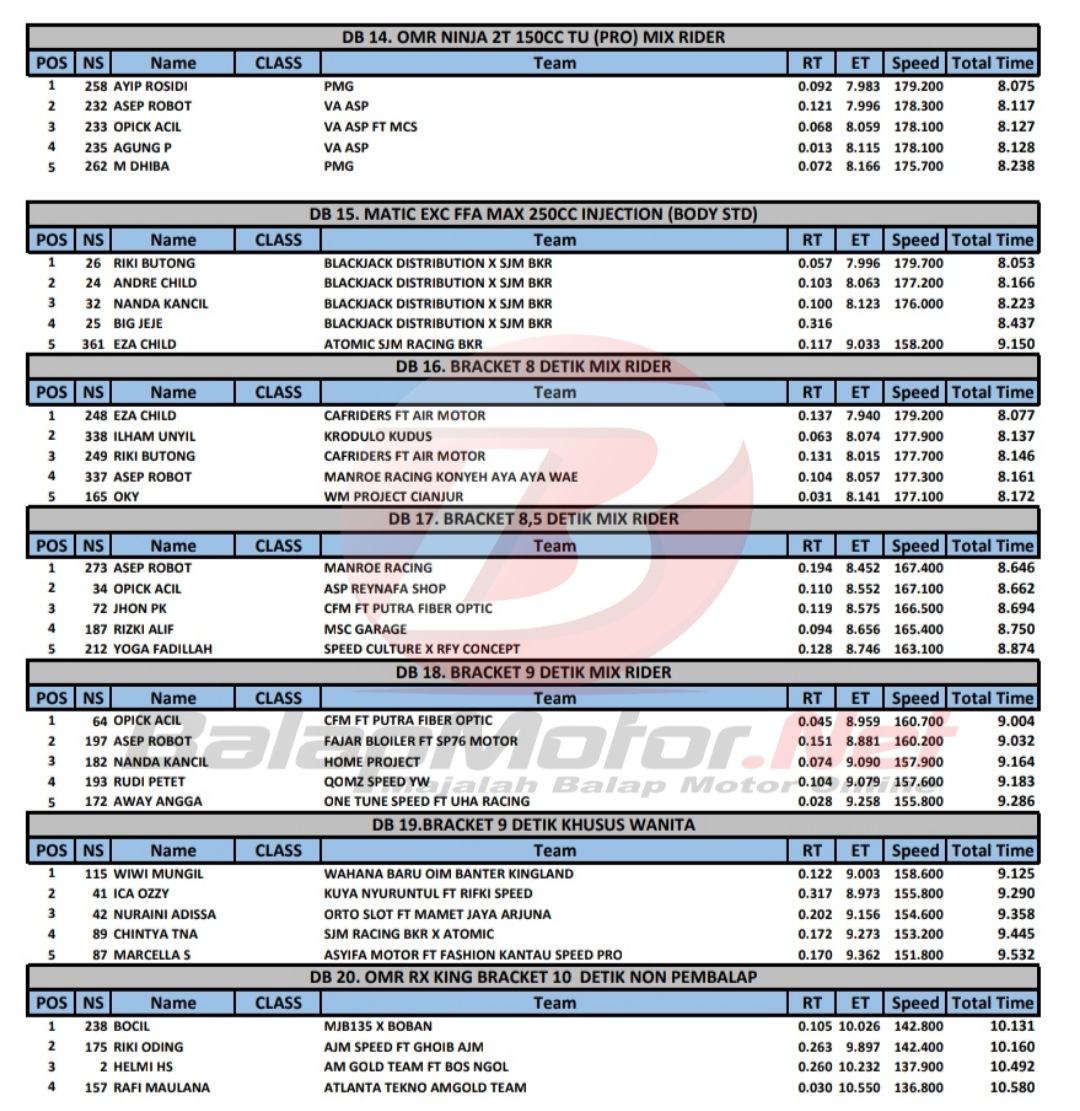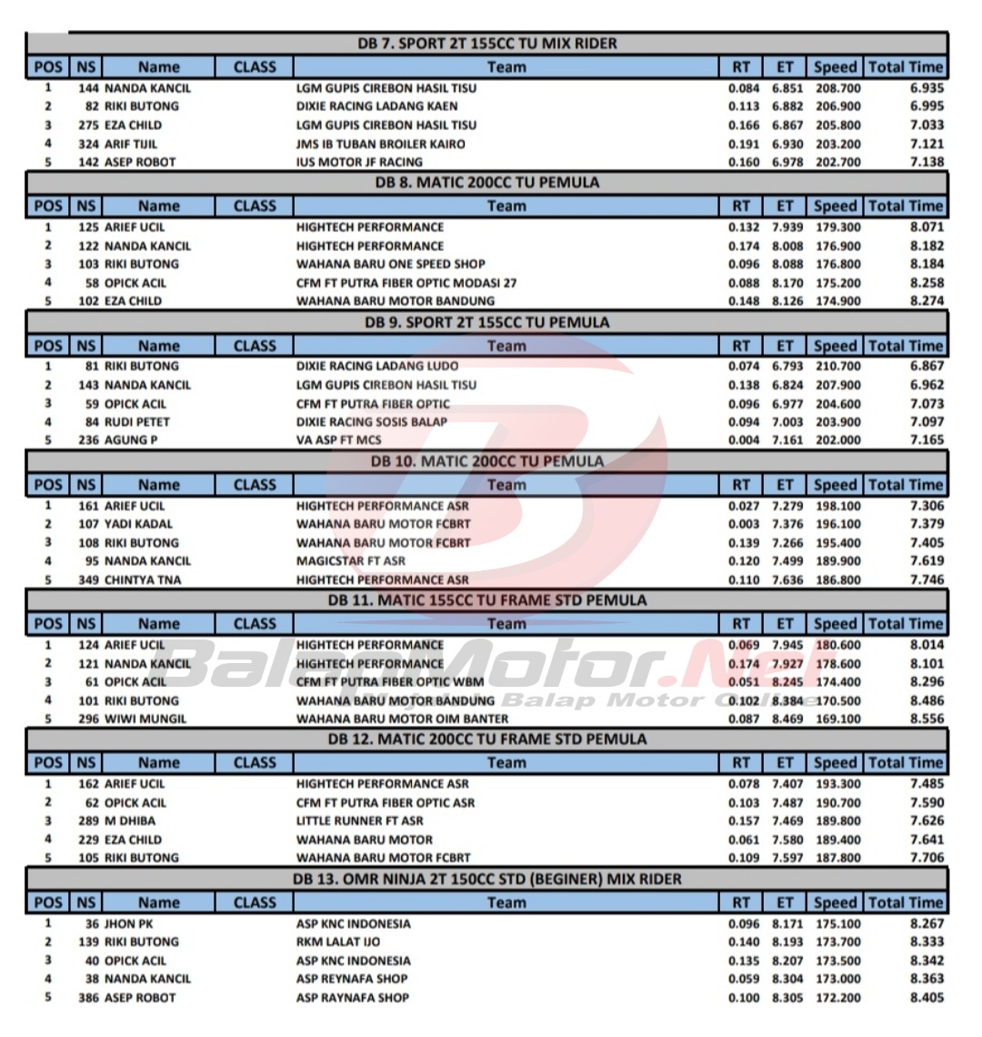 Hasil Juara Kejurda Drag Bike Cimahi 12 Maret 2022