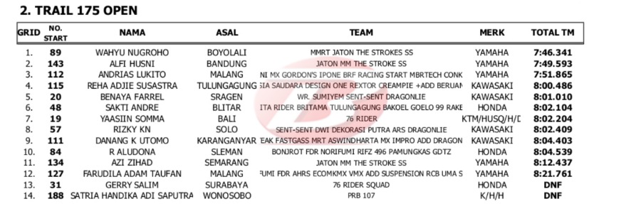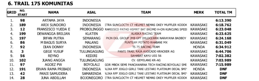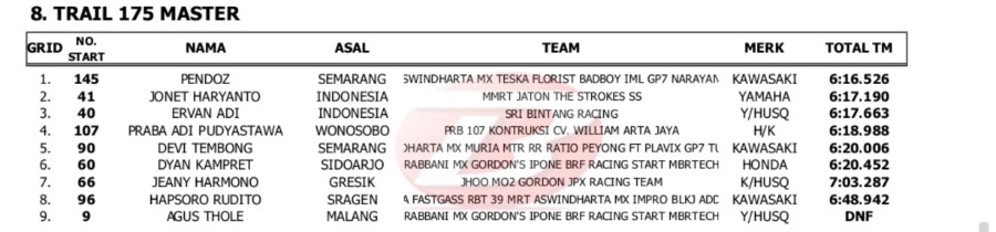 Hasil Juara Moto1 Trial Game Asphalt Seri 2 BoyolaliPenulis Yugo Aol - 01/10/2022 BalapMotor.Net – Berikut kami paparkan hasil Moto1 kejuaraan 76 Trial Game Asphalt (TGA) putaran kedua yang berlangsung di sirkuit Gokart Boyolali pada 1 Oktober 2022.