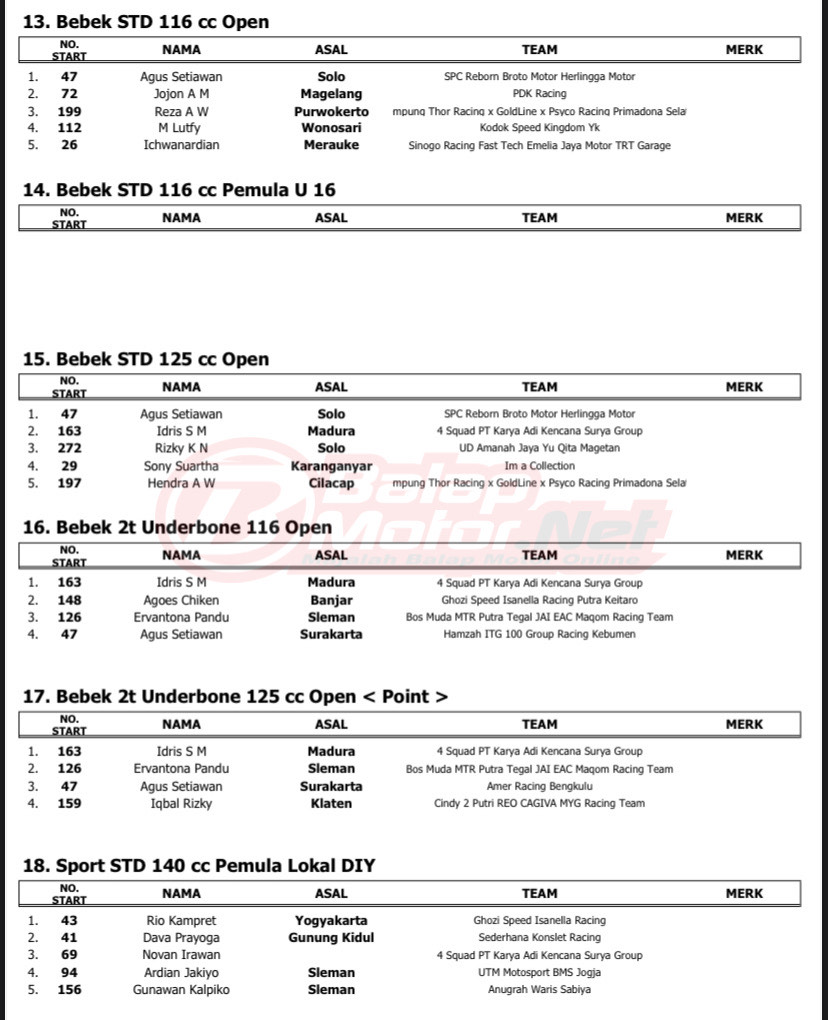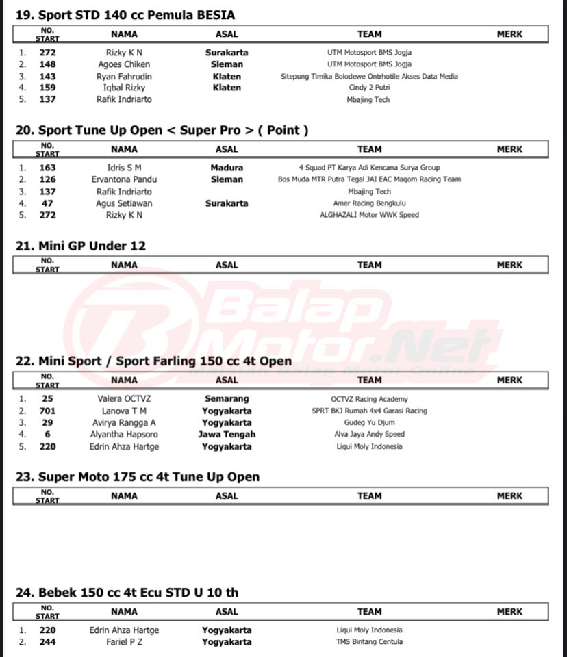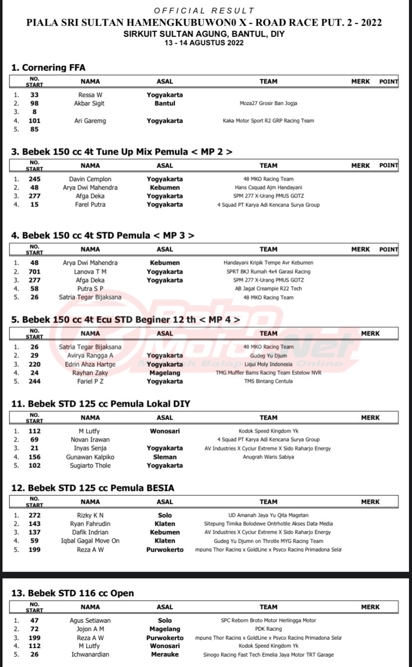BalapMotor.Net – Berikut merupakan hasil juara dari gelaran Piala Sri Sultan Hamengkubuwono X Road Race putaran 2 2022 yang digelar di sirkuit NP Stadion Sultan Agung, Bantul pada 13-14 Agustus 2021. | Katrox