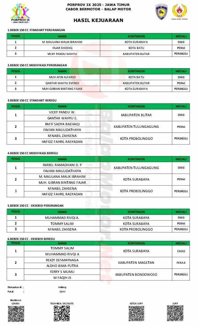 Hasil Juara Porprov IX 2025 Jawa Timur Cabor Bermotor