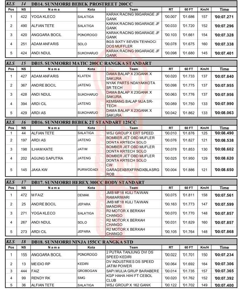 Hasil Juara RH57 Pemula Drag Bike Championship Purwodadi 2026
