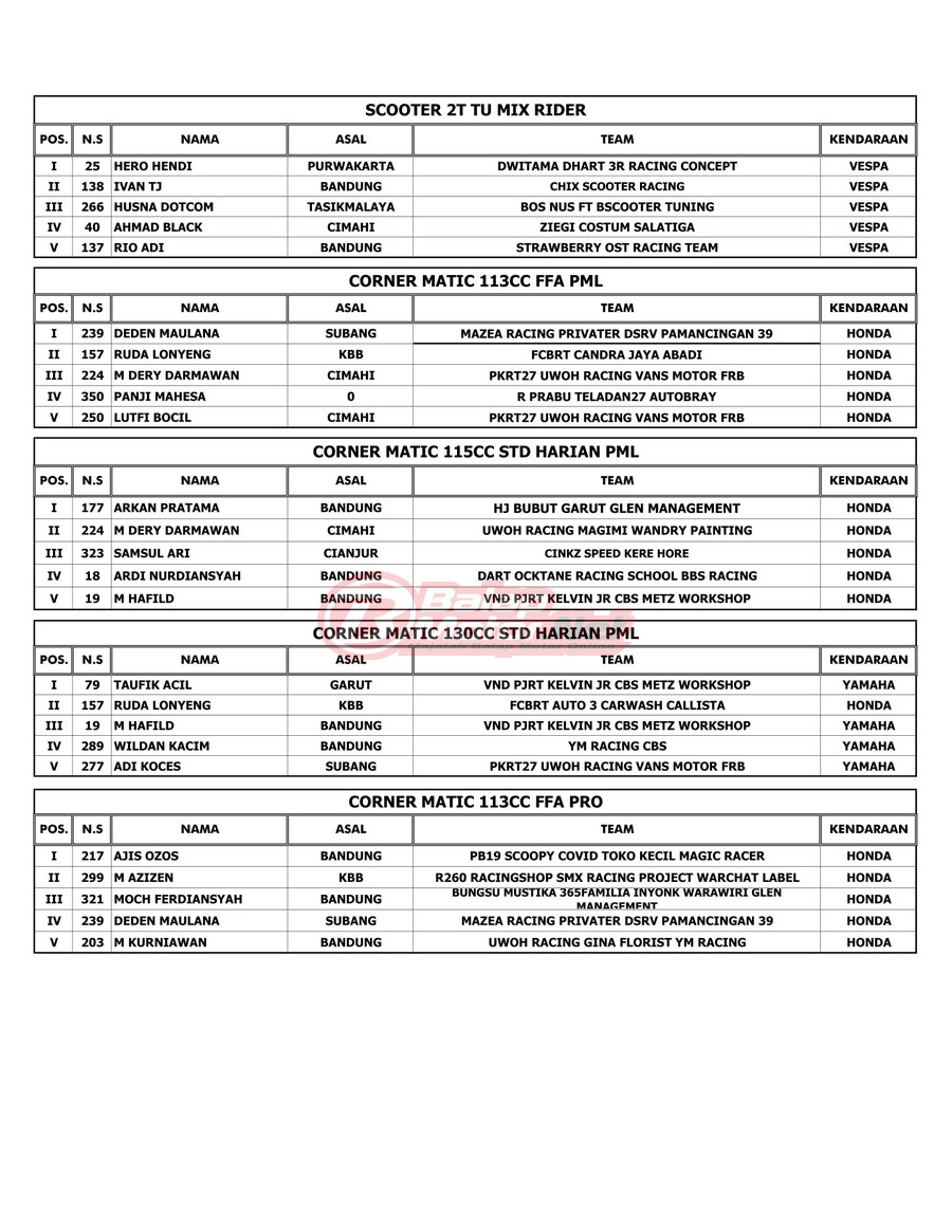 Hasil Juara RTP Sumber Production Championship Cimahi 6 November