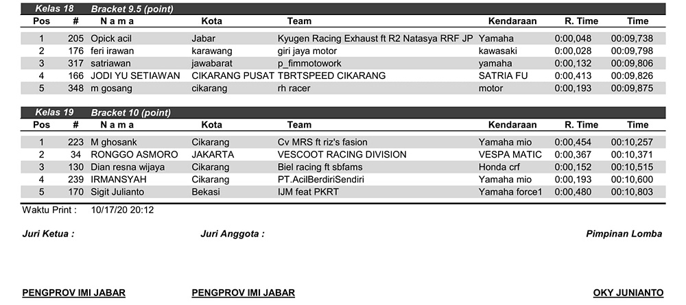 Hasil Juara URO Drag Bike Meikarta 16 Oktober 2020
