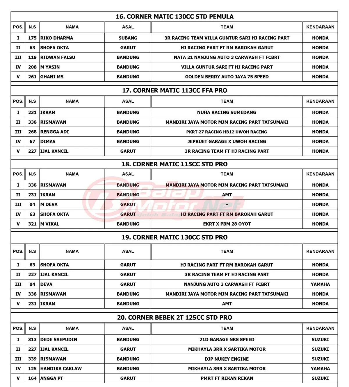 Gelaran ini merupakan event balap paling rutin digelar di Jawa Barat yang digarap oleh Sumber Production dibawah komando Sumber Agung Rizky. (**)