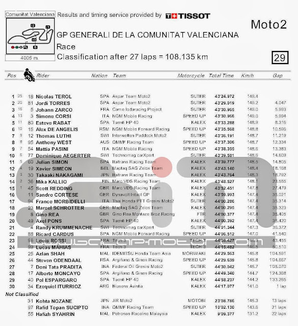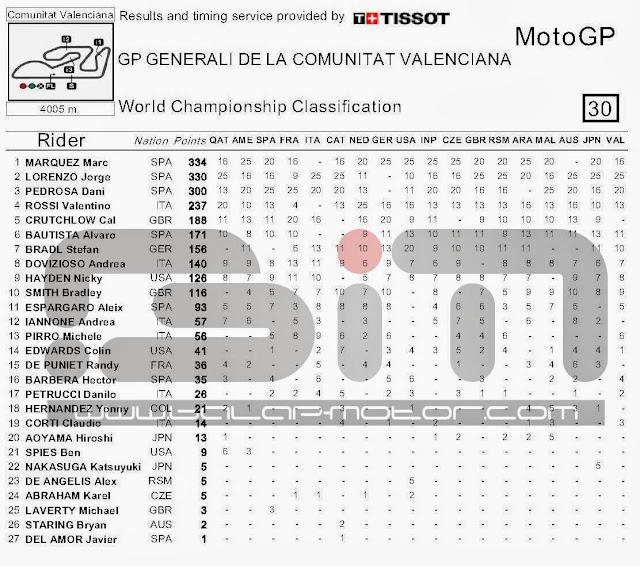 HASIL KOMPLIT RACE MOTOGP VALENCIA 2013, BESERTA STANDING POIN 2013Penulis Balapmotor.net - 10/11/2013