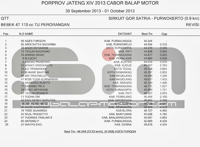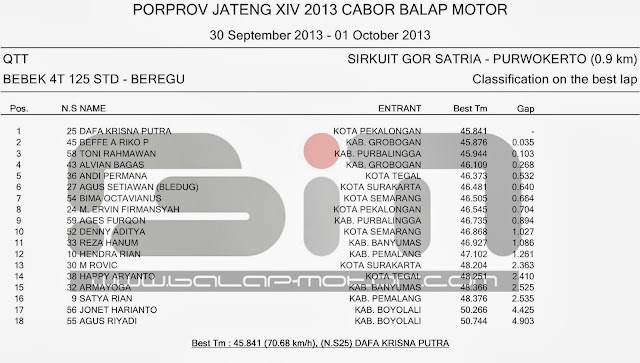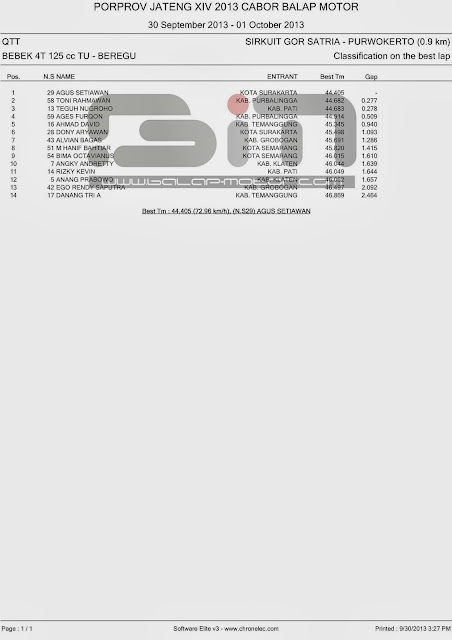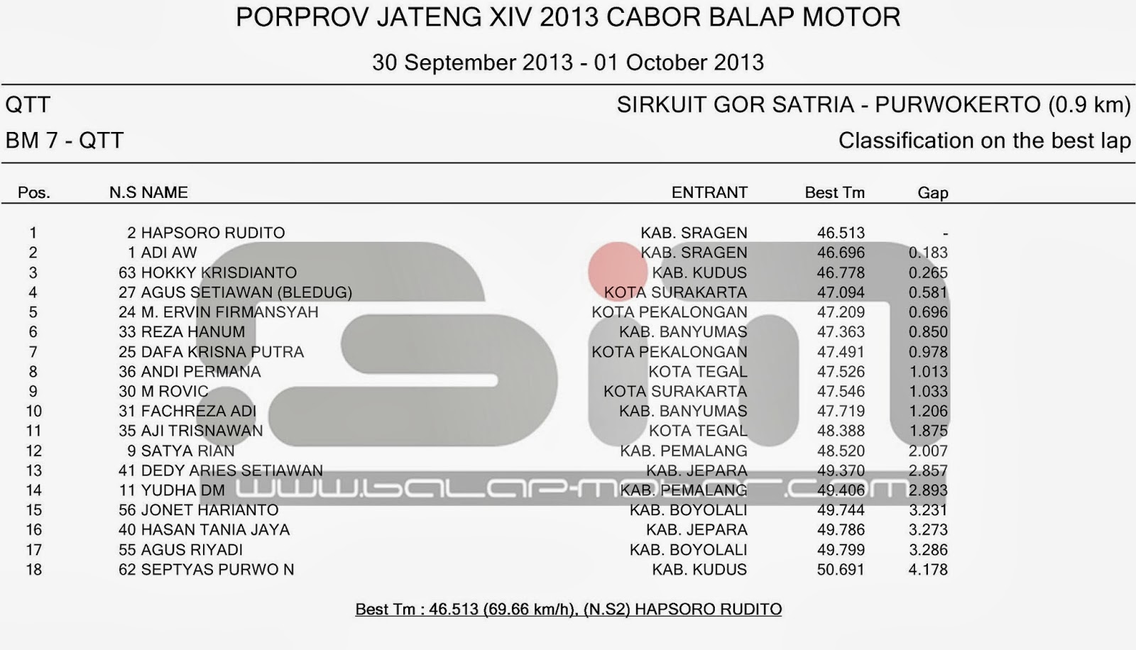 HASIL KUALIFIKASI BALAP MOTOR PORPROV JATENG 2013