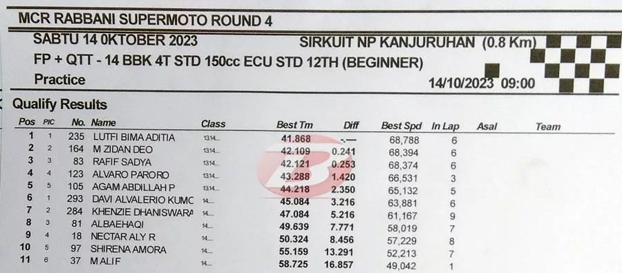 Hasil Kualifikasi MCR Seri 4 Malang 14 Oktober 2023