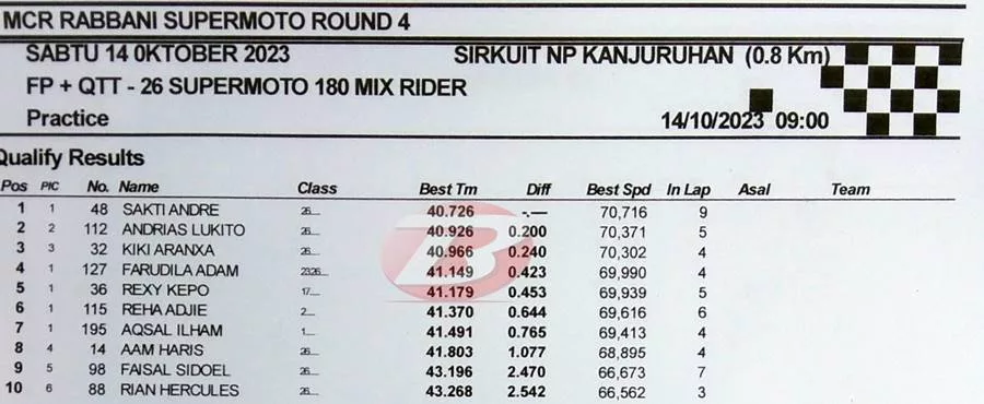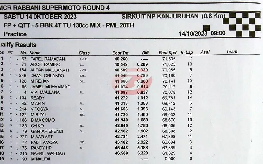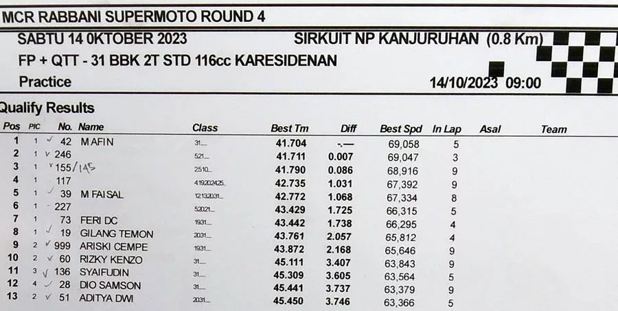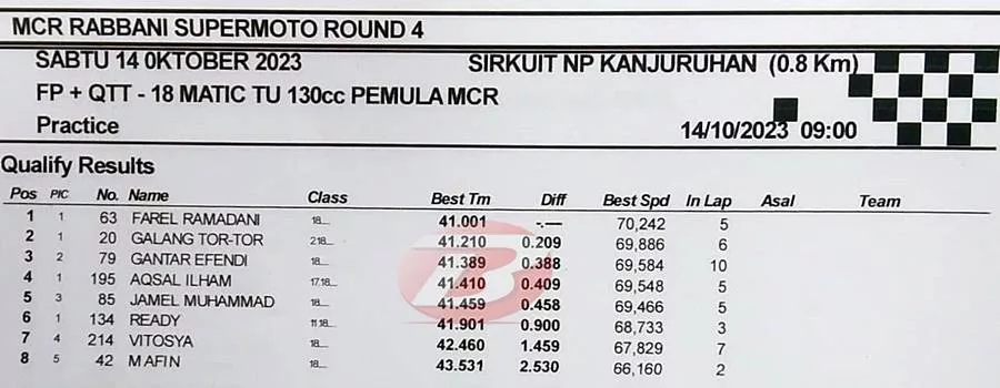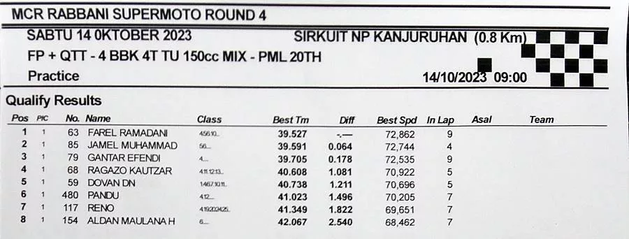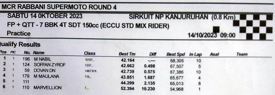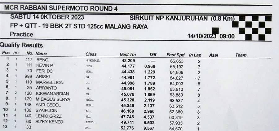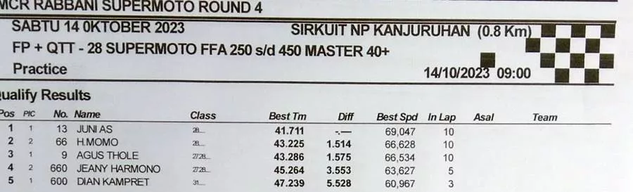Hasil Kualifikasi MCR Seri 4 Malang 14 Oktober 2023