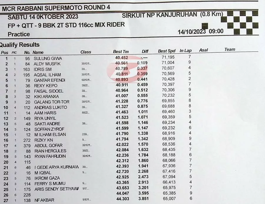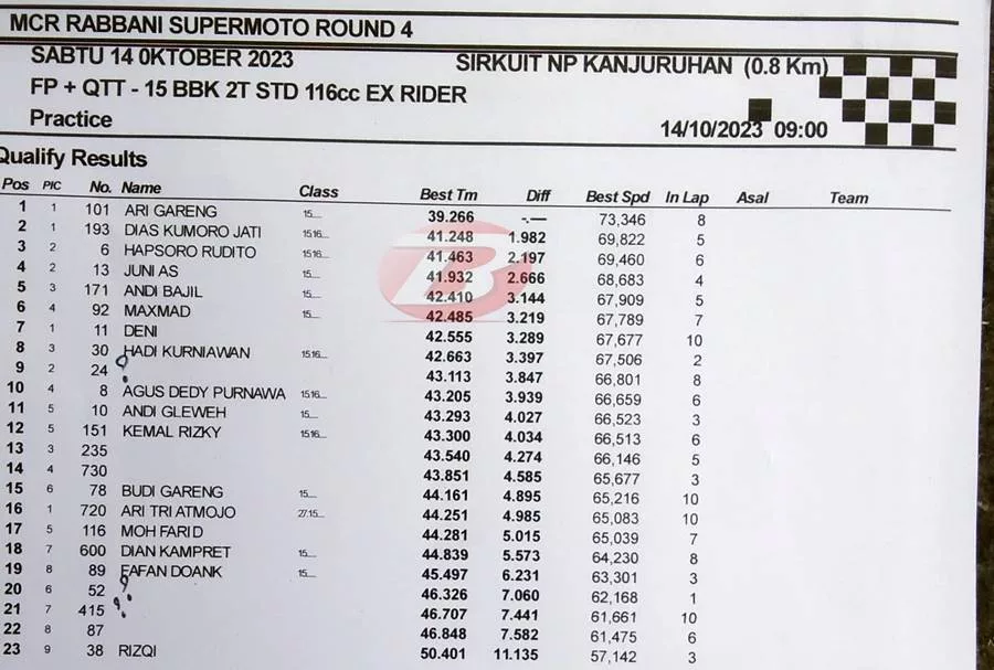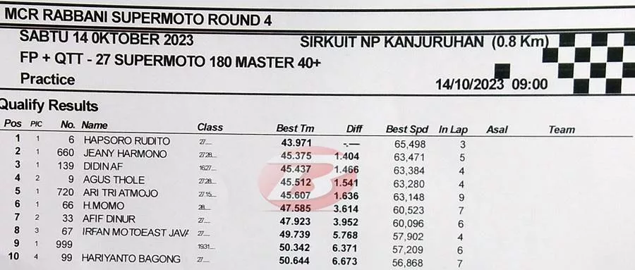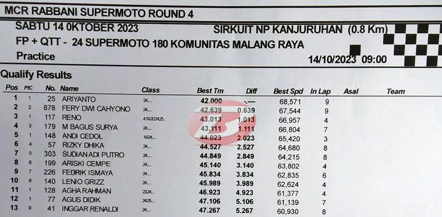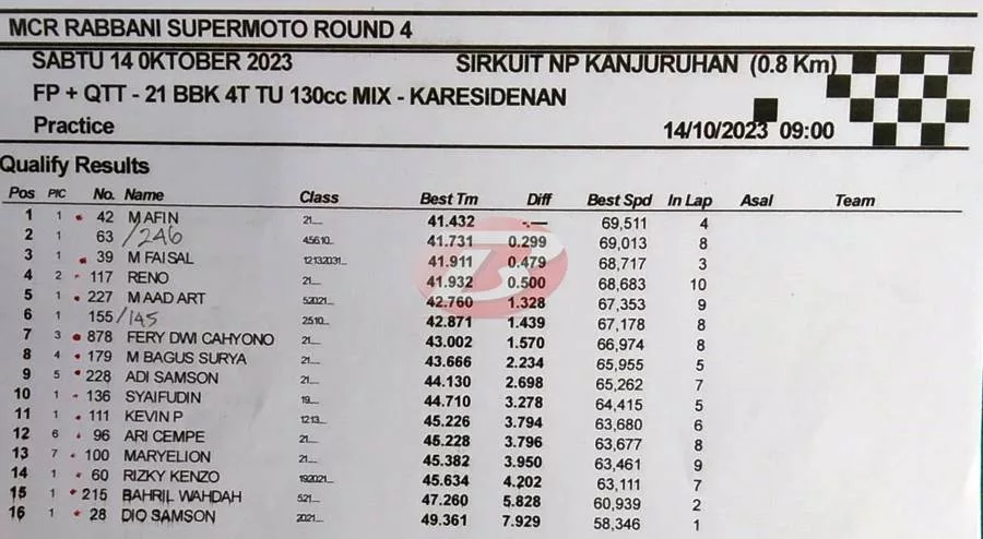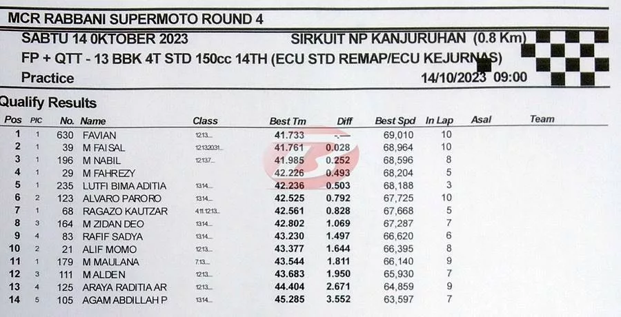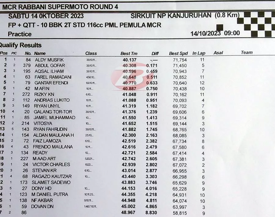 Hasil Kualifikasi MCR Seri 4 Malang 14 Oktober 2023