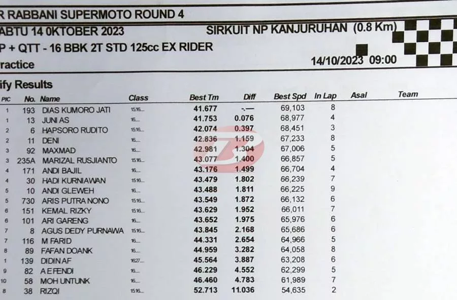 BalapMotor.Net – Berikut merupakan hasil kualifikasi kejuaraan balap motor Matapanah Cup Race (MCR) putaran 4 yang berlangsung di sirkuit NP. Kanjuruhan, Kepanjen, Malang, Jawa Timur pada Sabtu 14 Oktober 2023. (***)