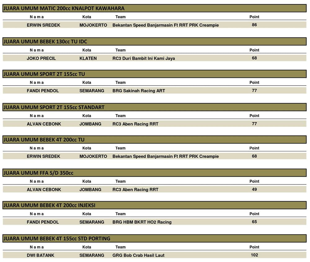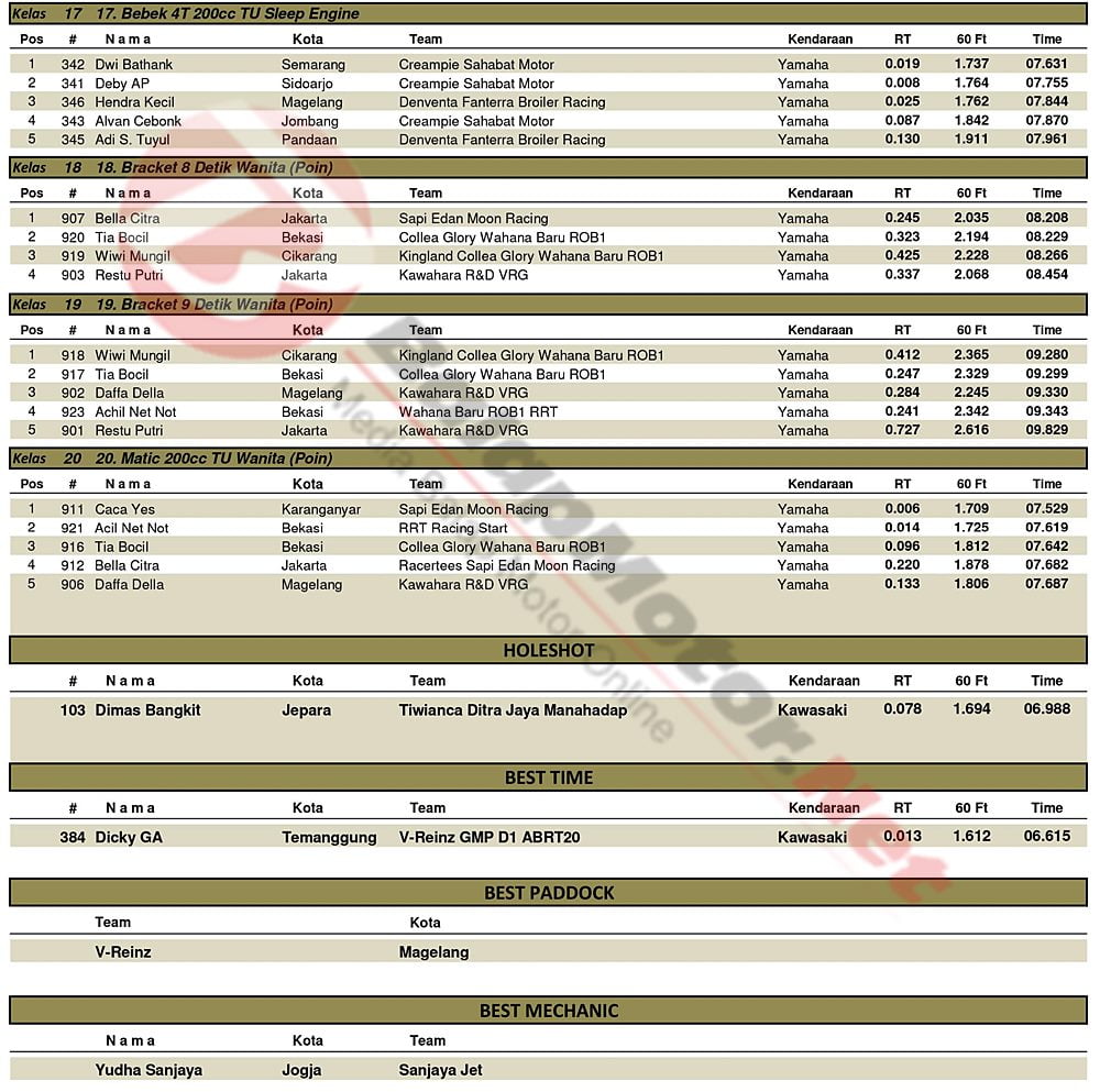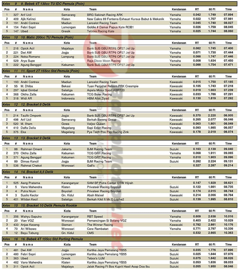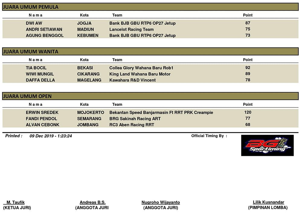 BalapMotor.Net – Berikut kami paparkan hasil putaran final kejuaraan Kawahara IRC Indonesia Drag Bike Championship (IDC) 2019 yang berlangsung di sirkuit NP. Lanud Gading, Wonosari, Gunung Kidul pada Minggu 8 Desember 2019. | Yugo