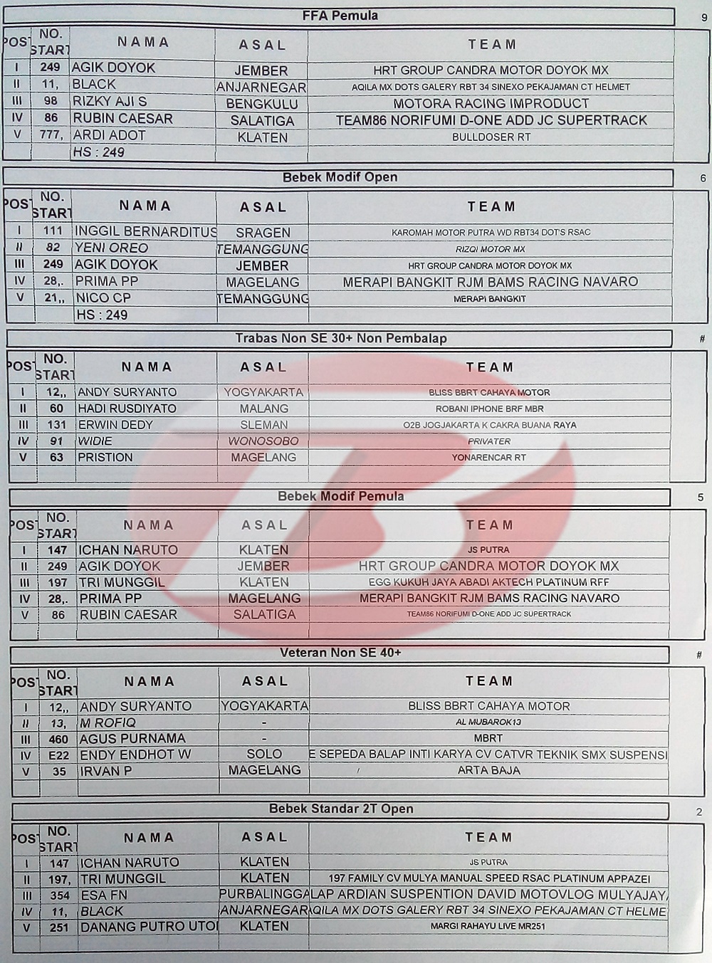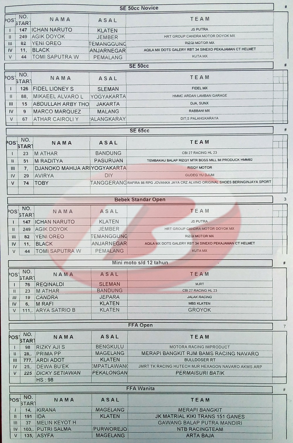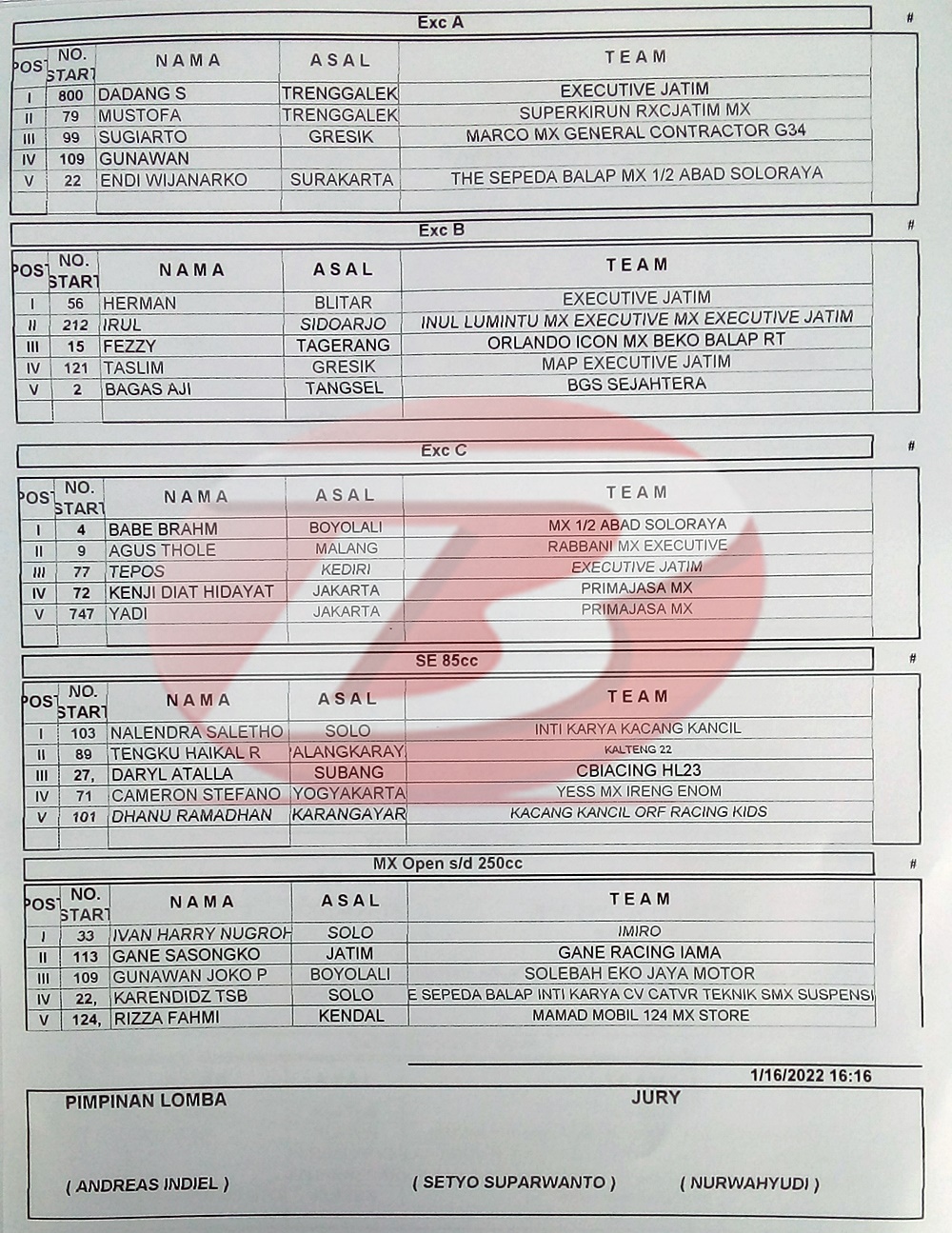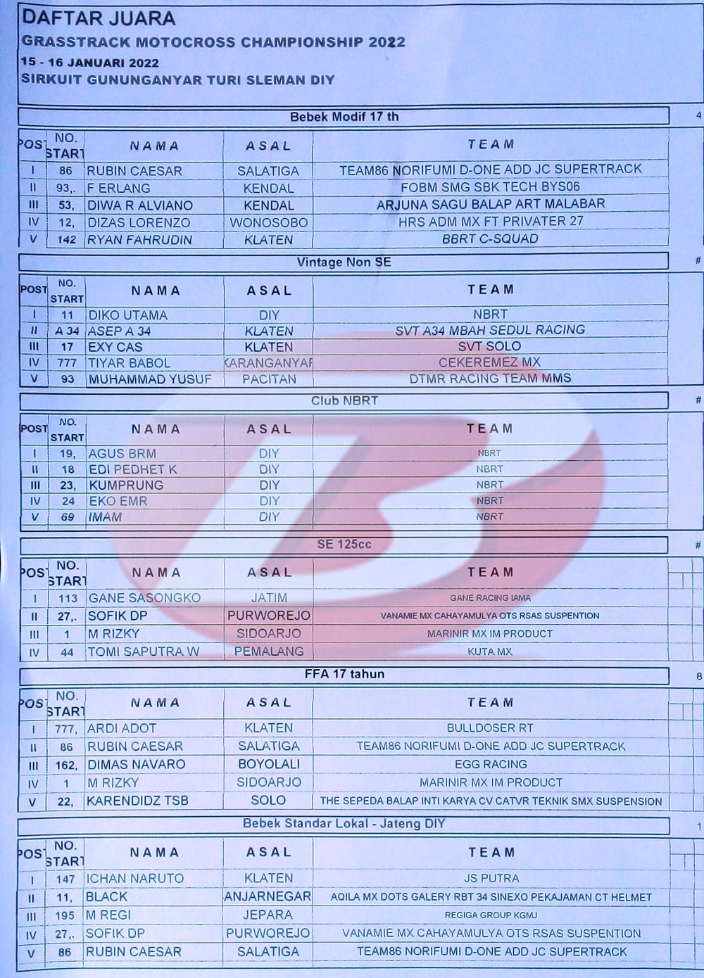 BalapMotor.Net – Berikut kami paparkan hasil kejuaraan Grasstrack Motocross Championship 2022 yang berlangsung di sirkuit Gununganyar, turi, Sleman, DIY pada 15-16 Januari 2022.