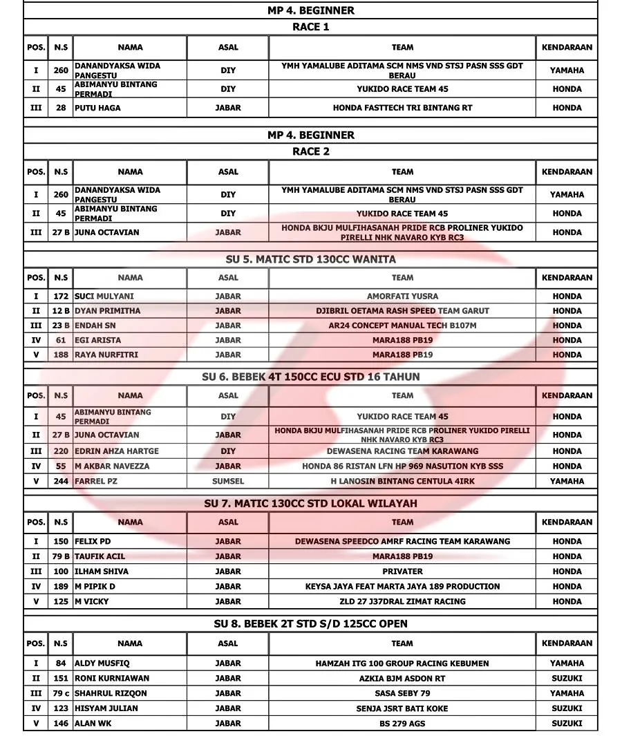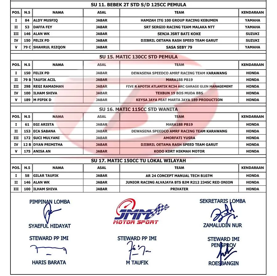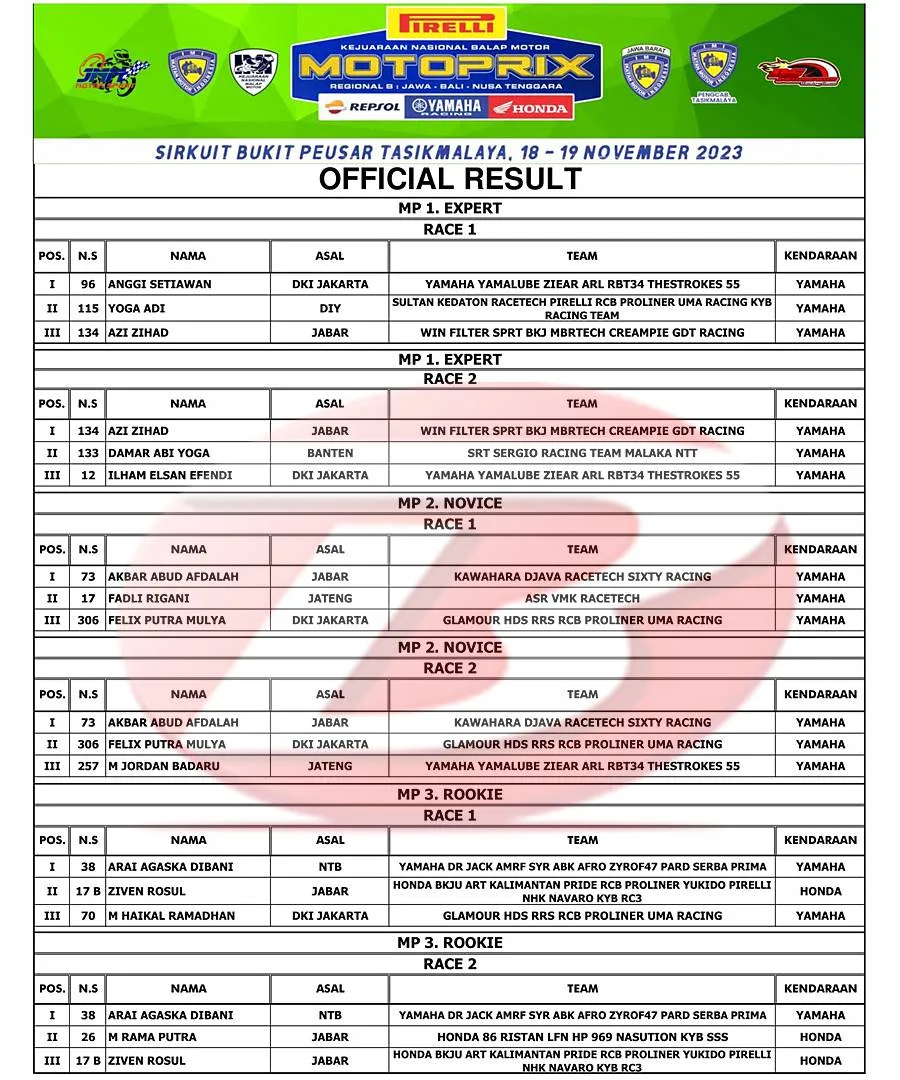 Hasil Lengkap Kejurnas MotoPrix Tasikmalaya 18-19 November 2023