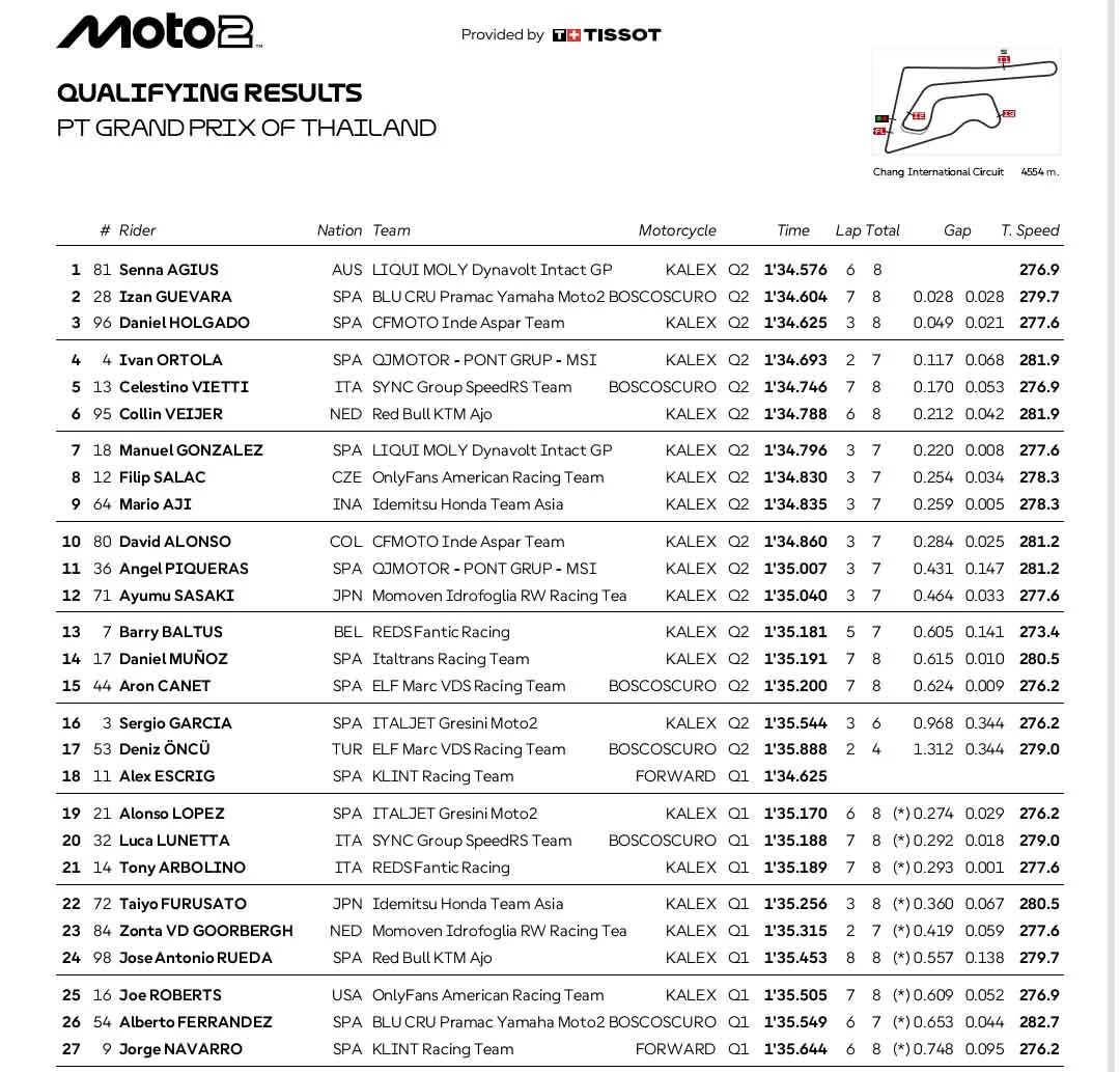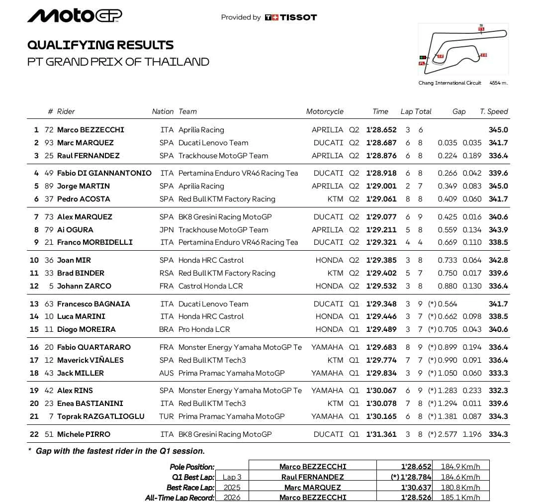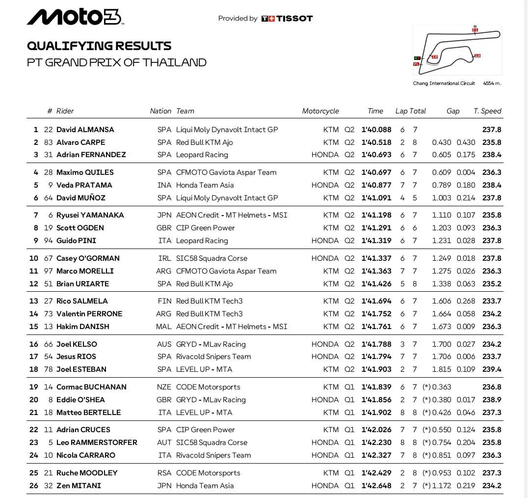 Hasil Lengkap Kualifikasi Grand Prix Thailand 2026