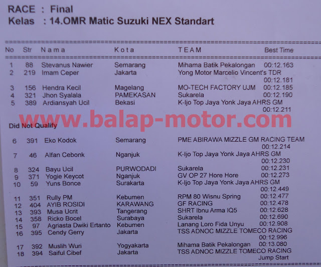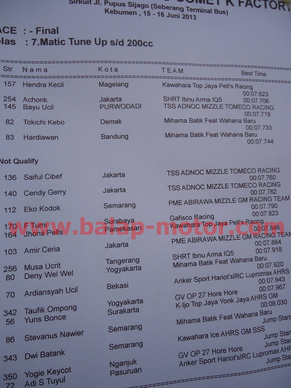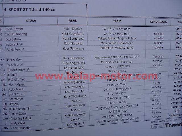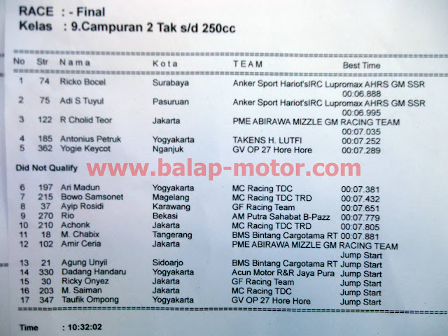 HASIL LENGKAP PERTAMINA DRAG BIKE KEBUMEN