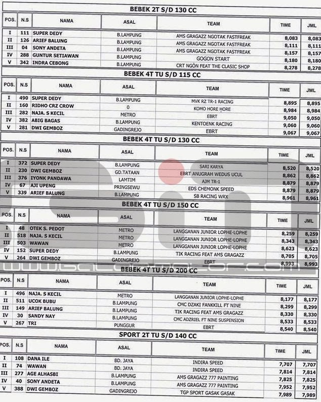 HASIL LOMBA LAMPUNG DRAG BIKE CHAMPIONSHIP 2013, PRINGSEWU, LAMPUNG 3 NOVEMBER 2013,Penulis Balapmotor.net - 05/11/2013