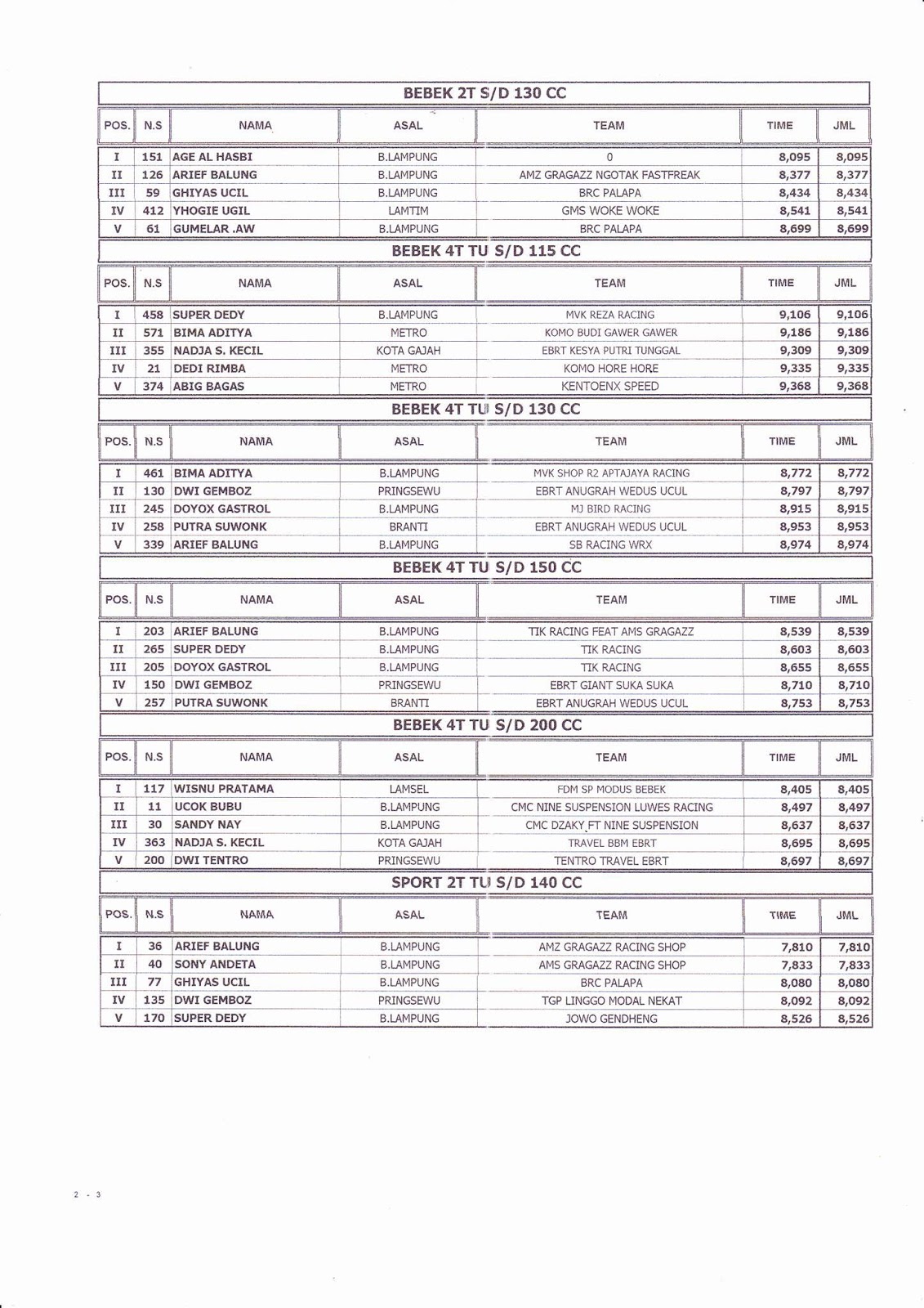 HASIL LOMBA PRINGSEWU DRAG BIKE MERAH PUTIH 24-25 AGUSTUS 2013