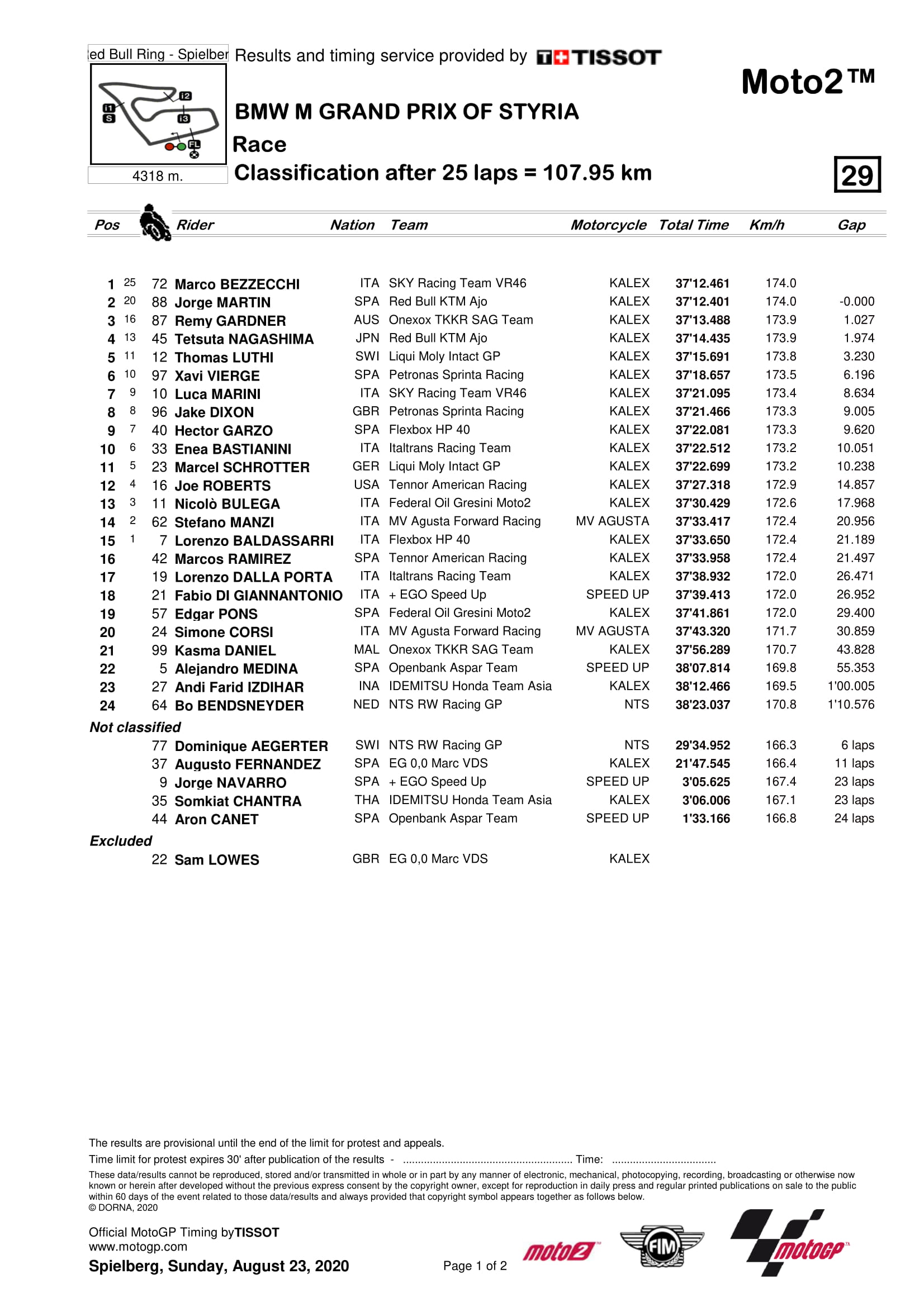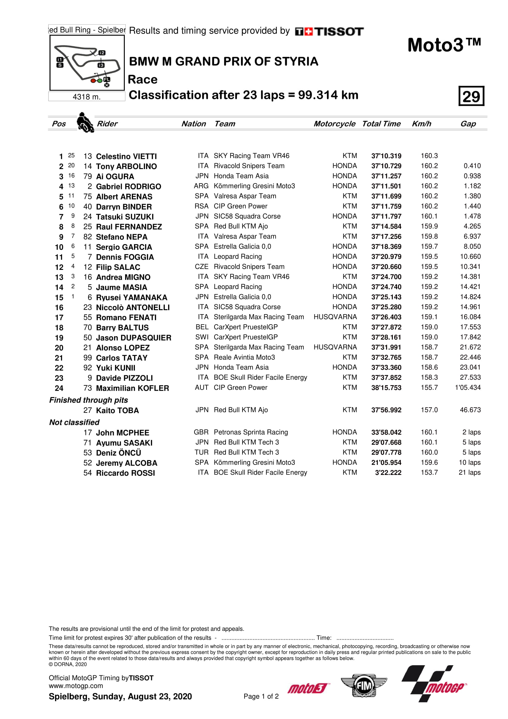 Hasil MotoGP Styria 2020 Semua KelasPenulis Fajar Sulistiono - 23/08/2020Kelas Moto3 Styria 2020 |Foto: MotoGP BalapMotor.Net – Berikut merupakan hasil semua kelas dari gelaran MotoGP BMW M Grand Prix Of Styria 2020 yang berlangsung di sirkuit Red Bull Ring Spielberg, Austria pada 23 Agustus 2020.MotoGP Moto2Moto3