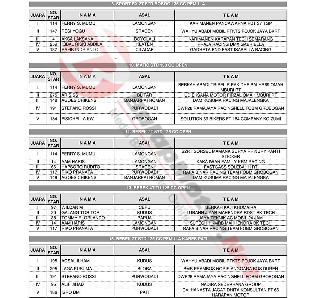 Acara balap yang rencana digelar selama 2 hari harus dirubah lantaran masalah perizinan. Hasil akhir sendiri langsung diambil dari babak QTT yang sudah berlangsung. | Yugo