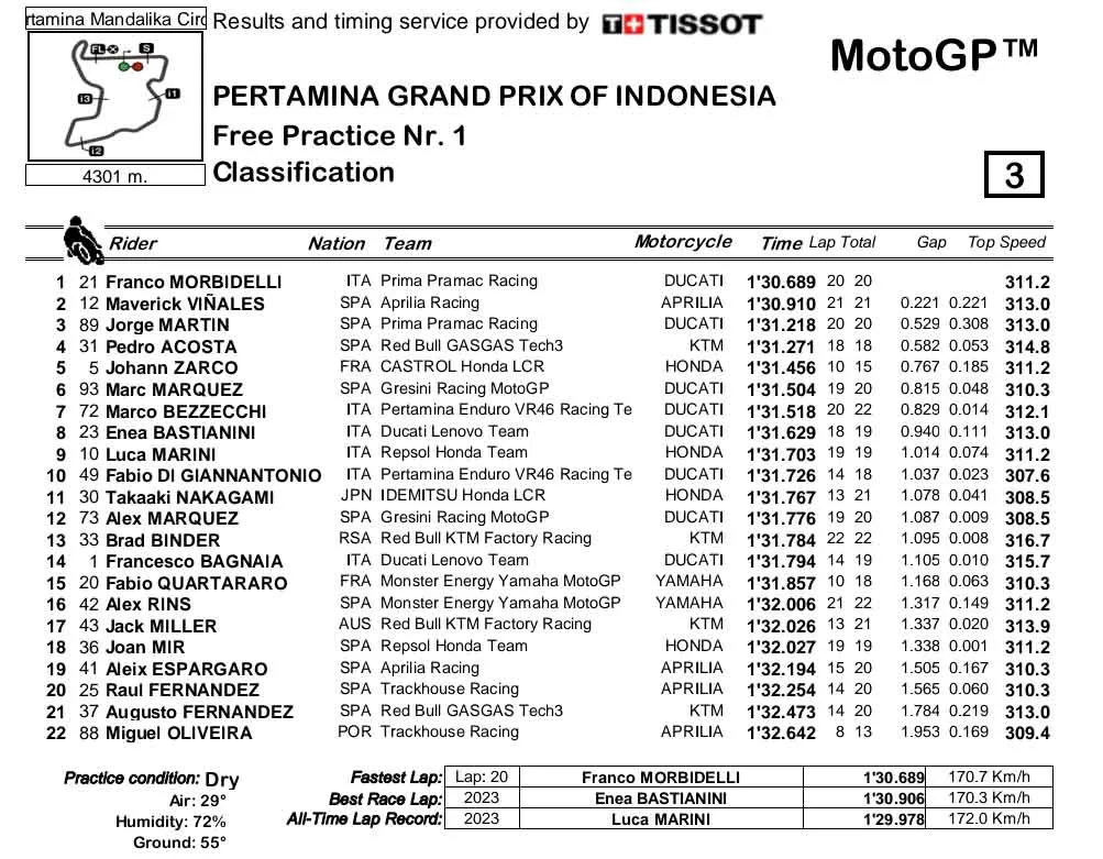 Hasil Free Practice Pagi Grand Prix Indonesia 2024:
