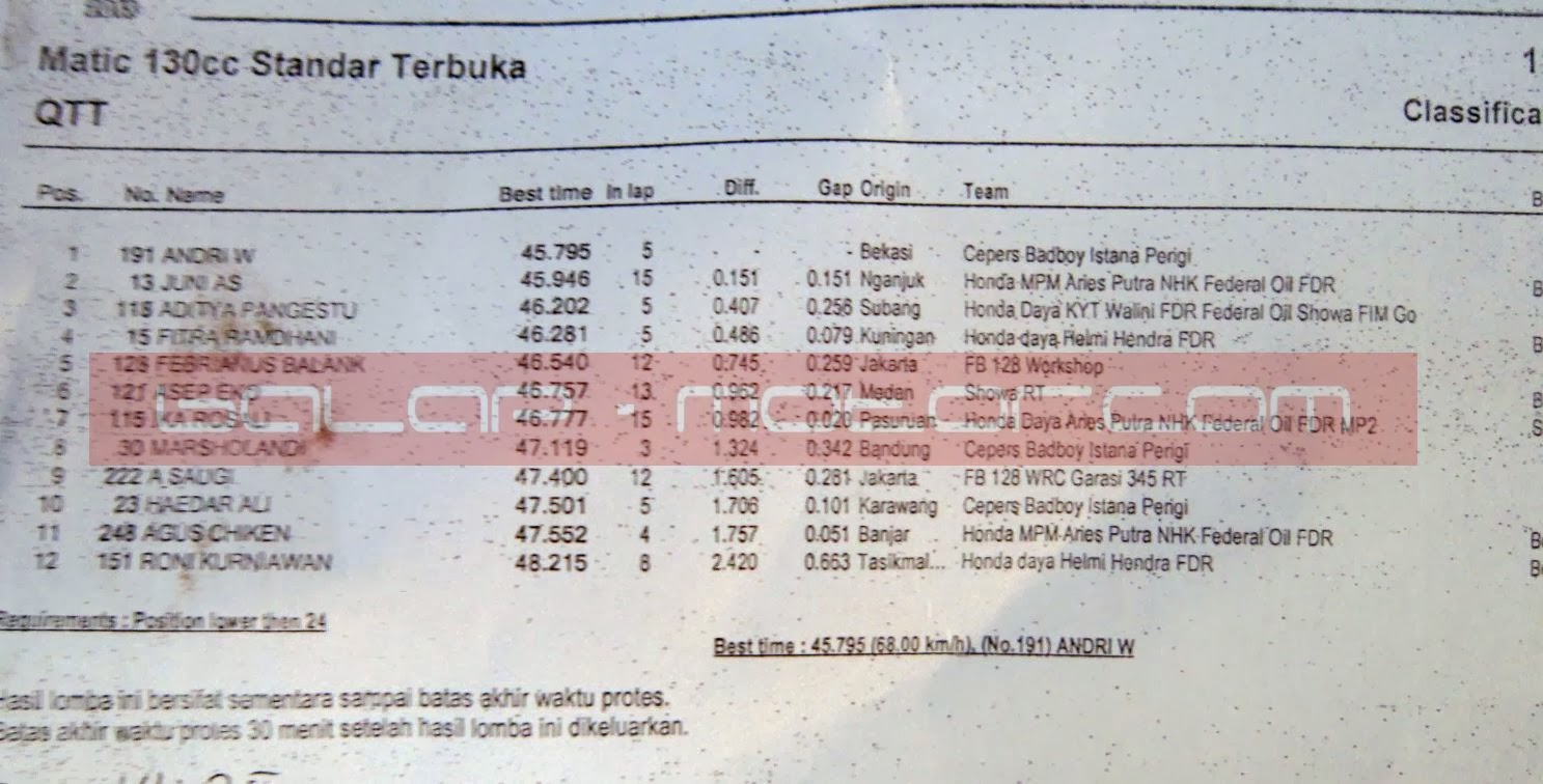 HASIL QTT HRC SERI 4 TEGAL 2 – 3 NOVEMBER 2013