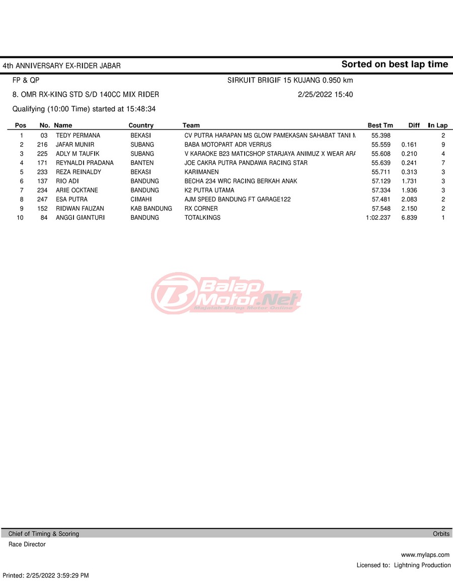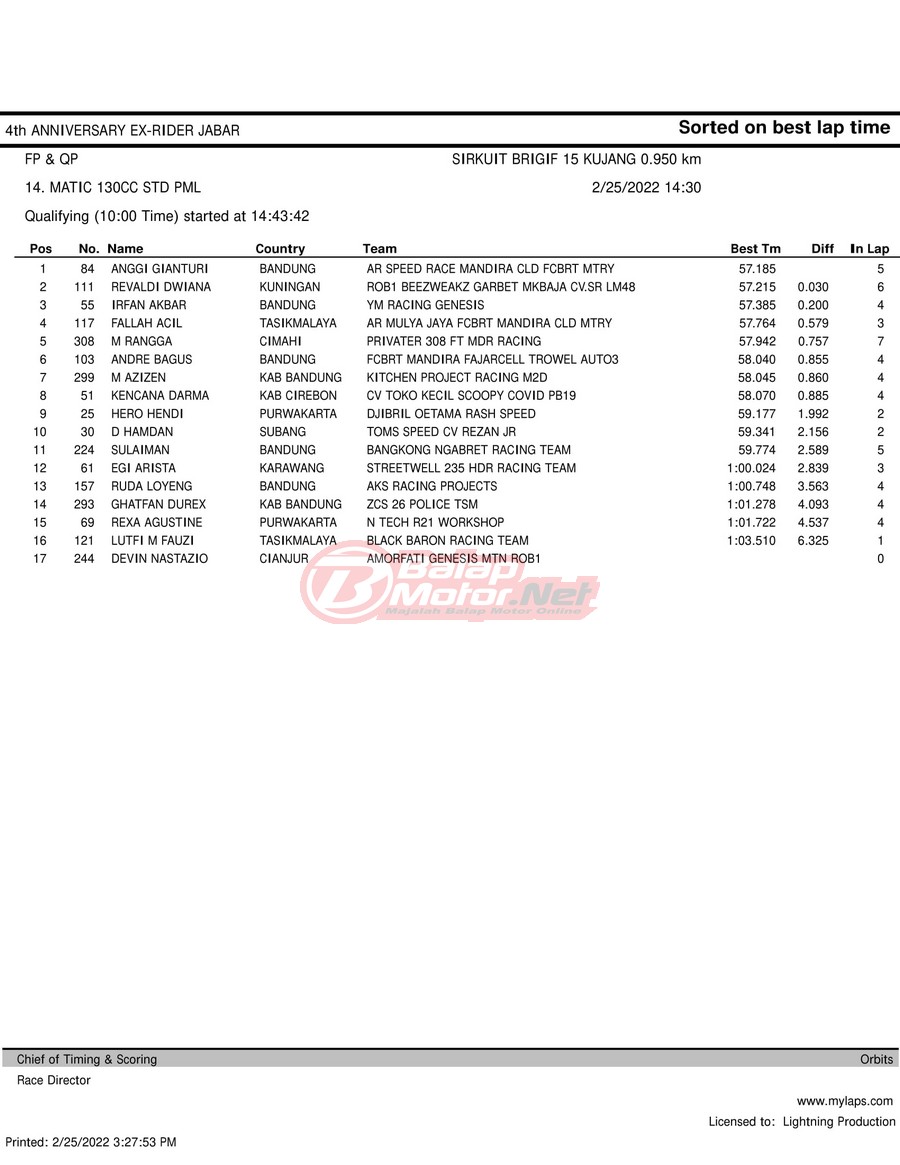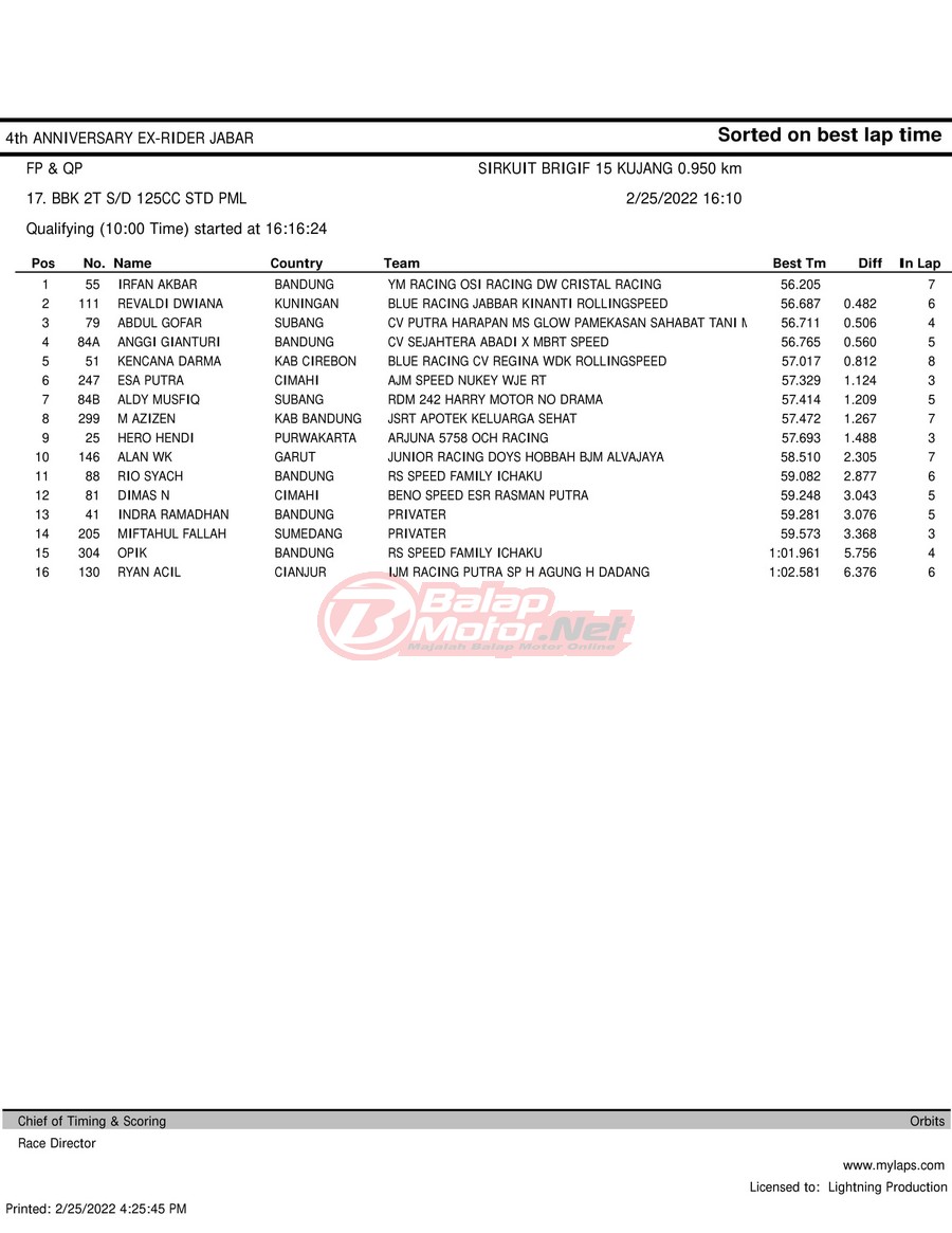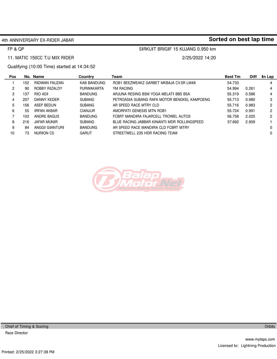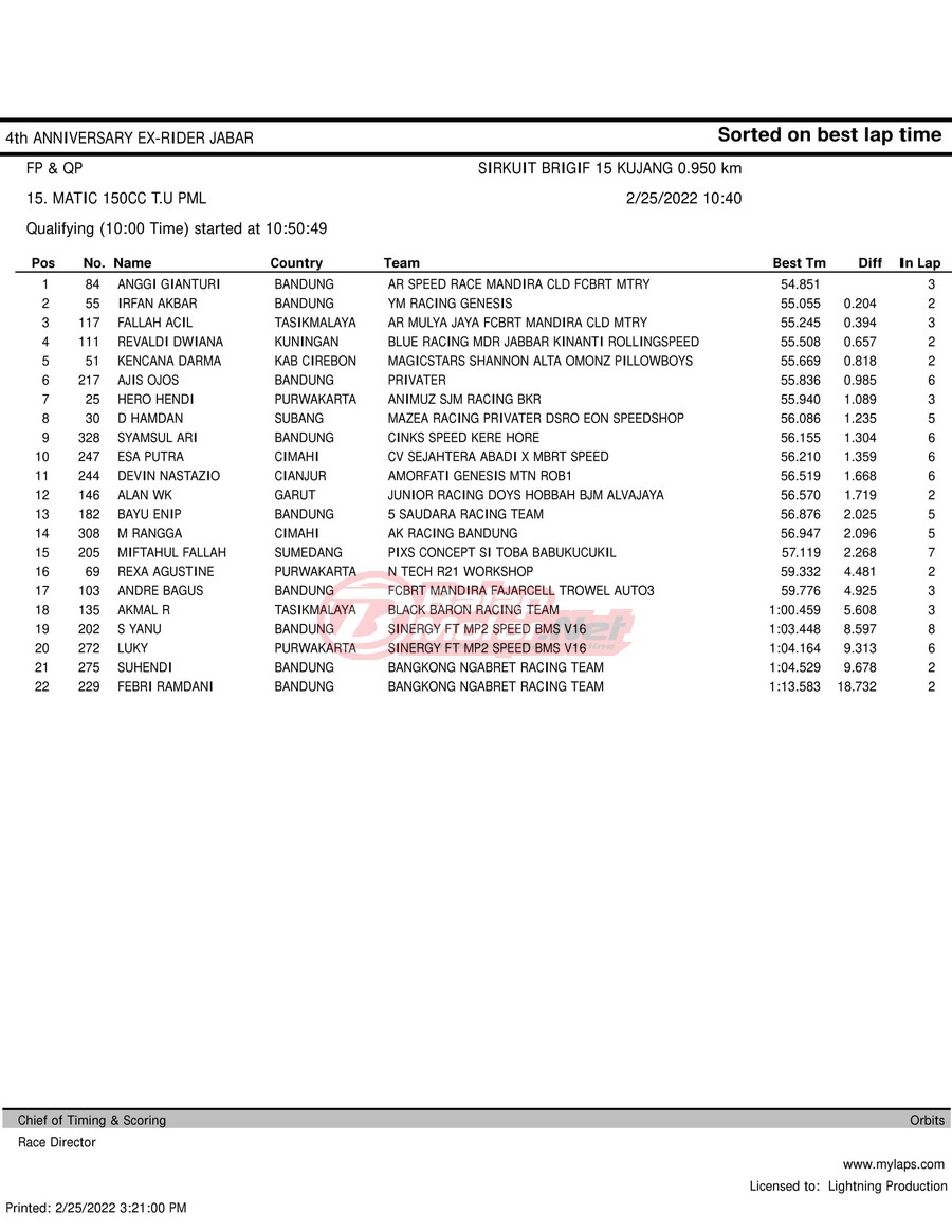 Hasil QTT Road Race Cimahi 25 Februari 2022