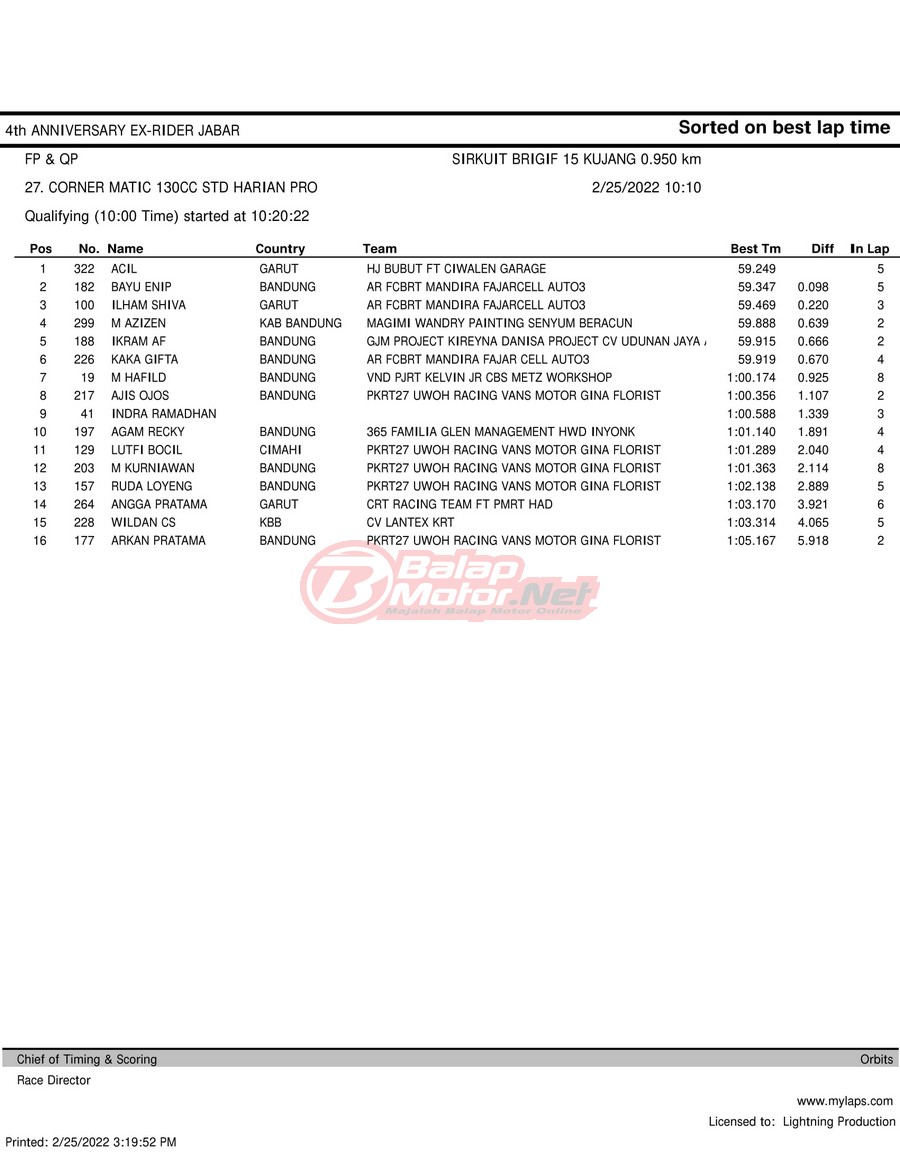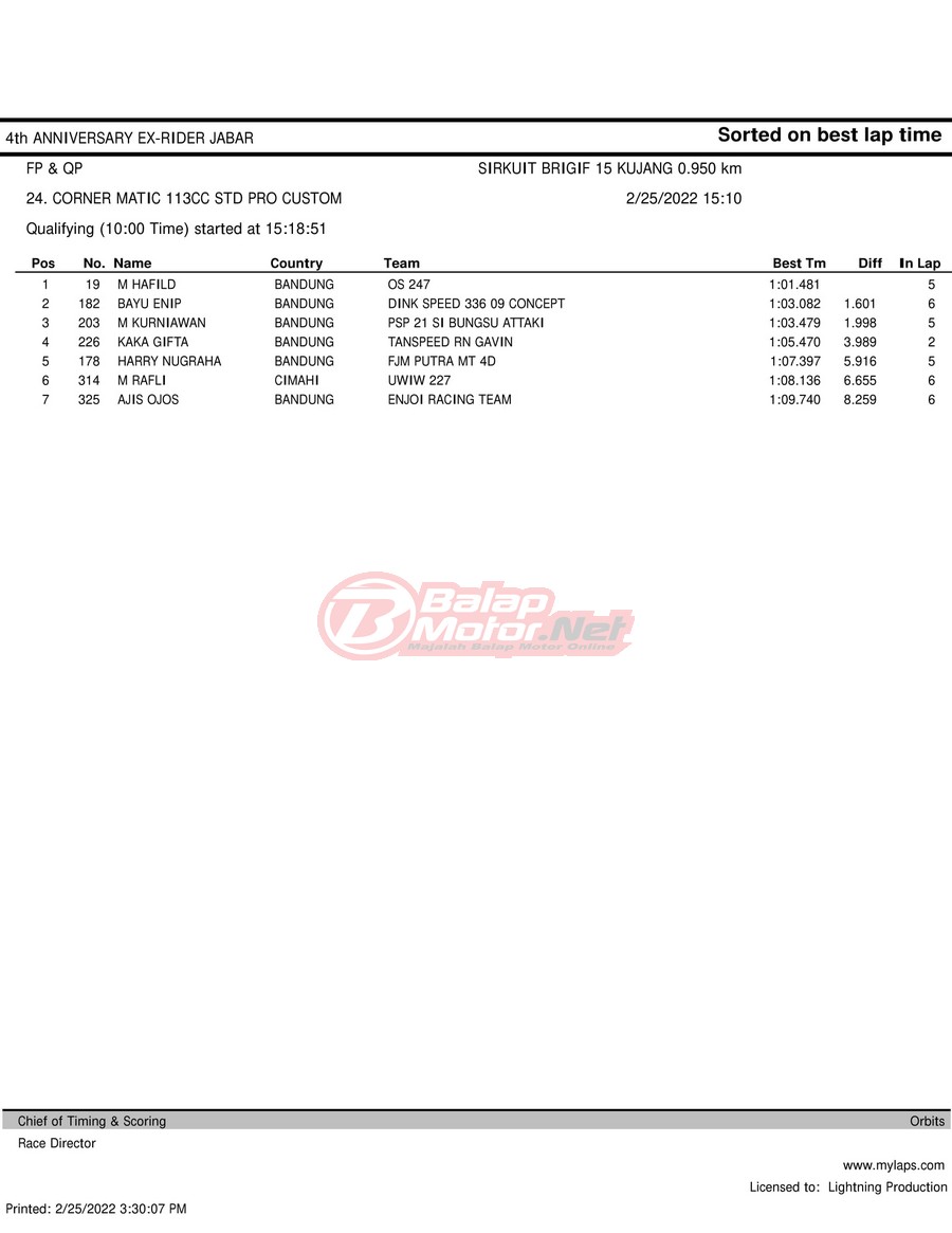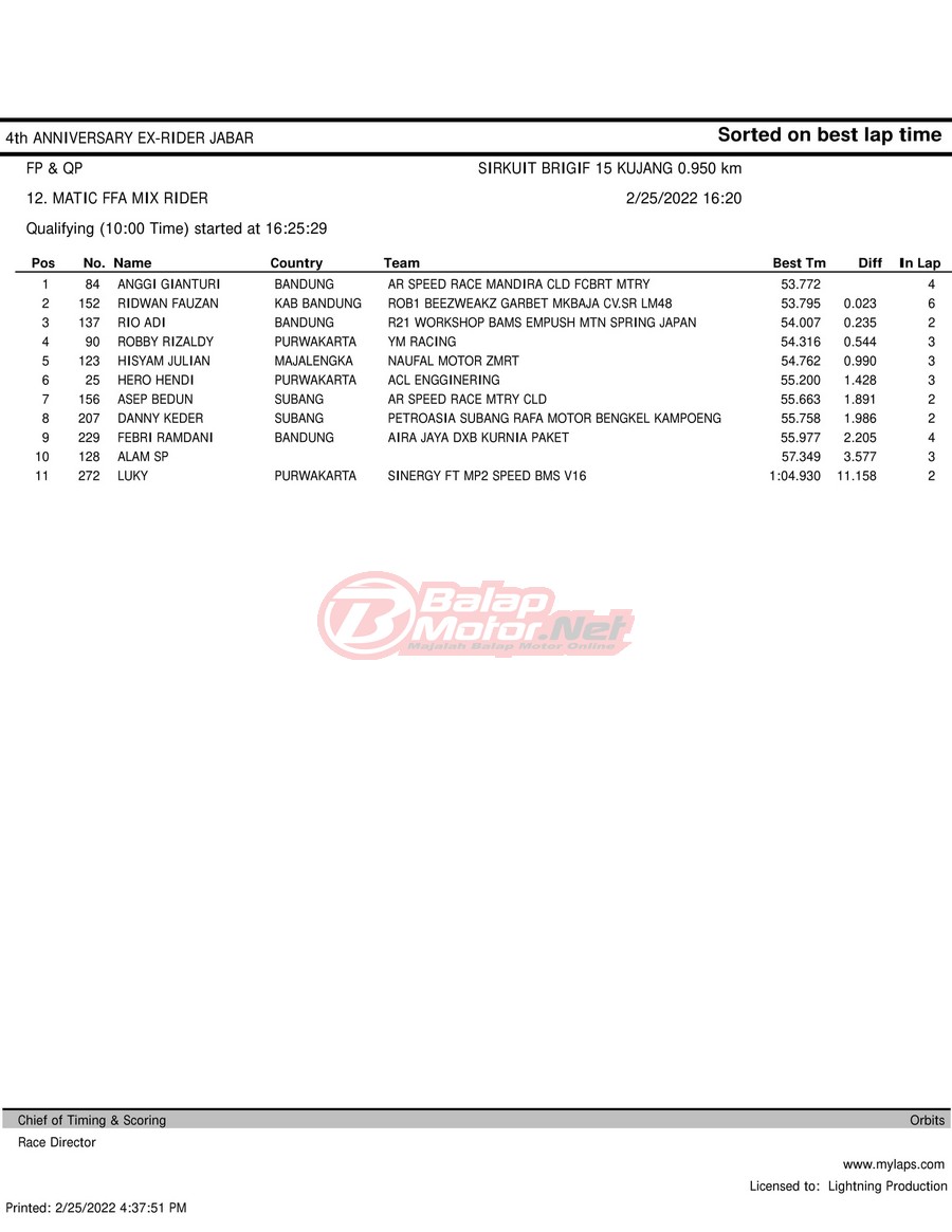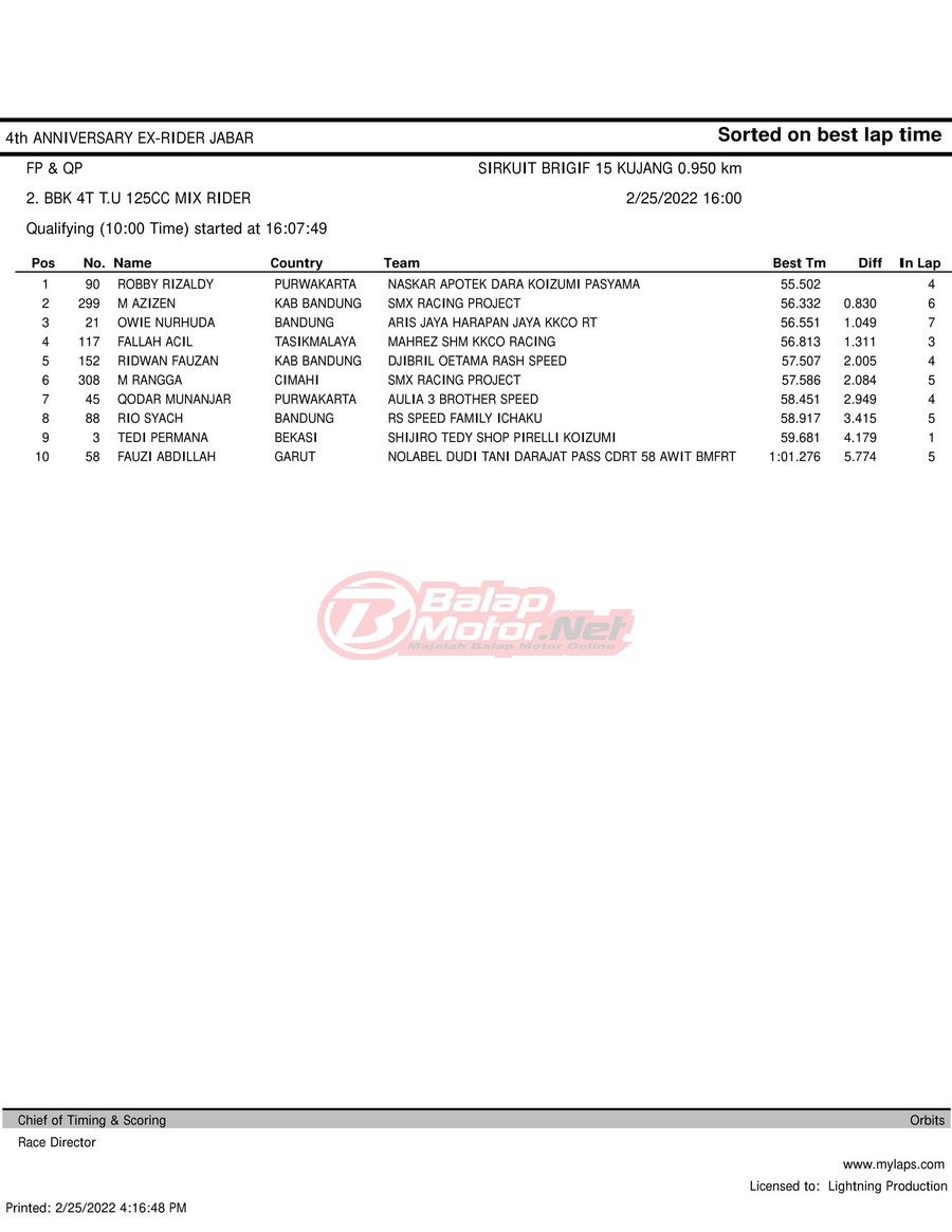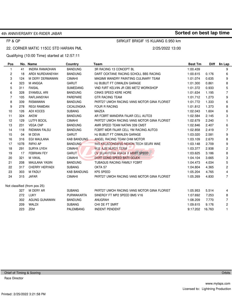 Hasil QTT Road Race Cimahi 25 Februari 2022