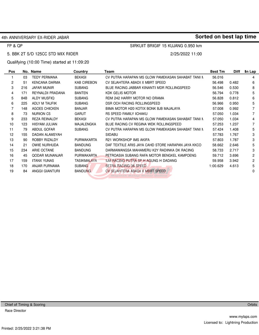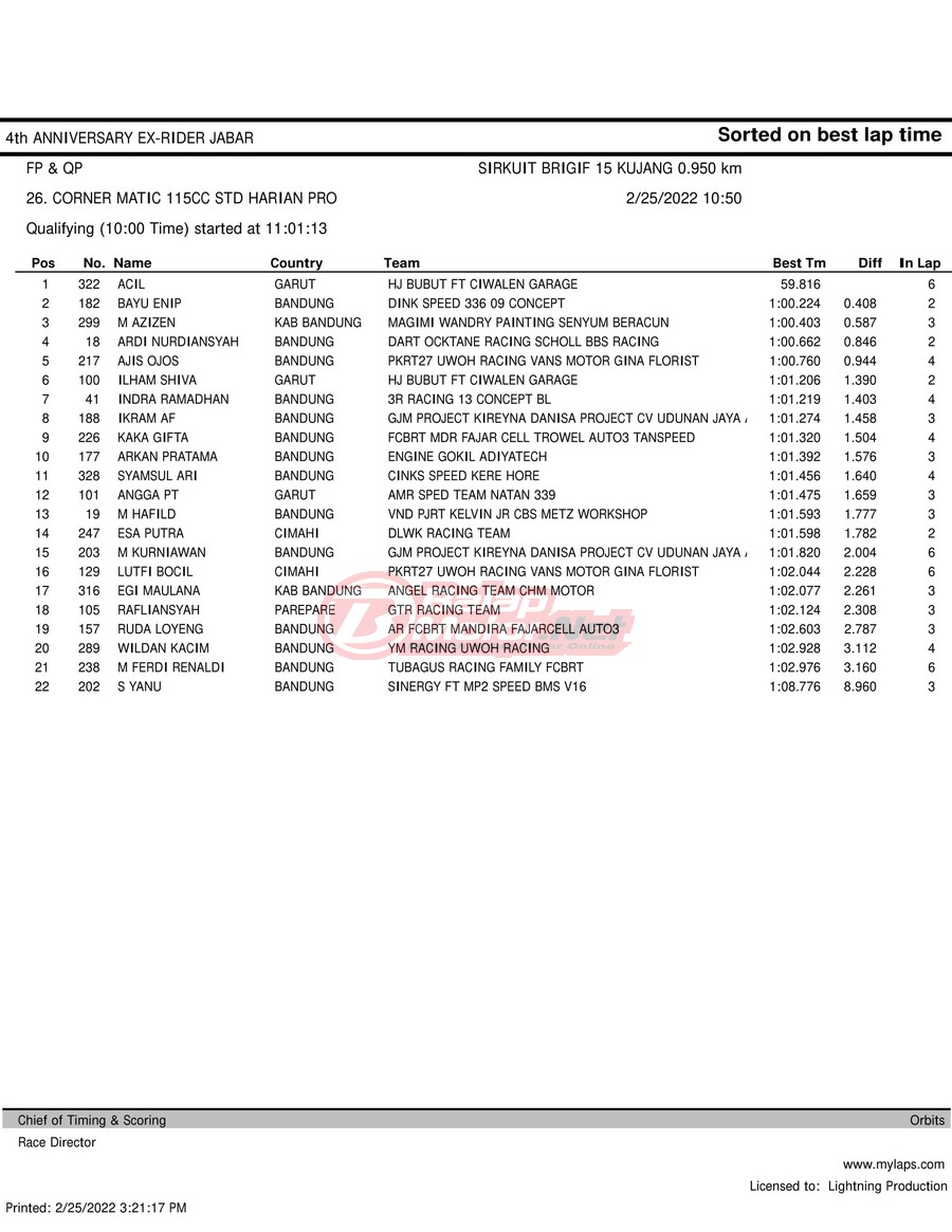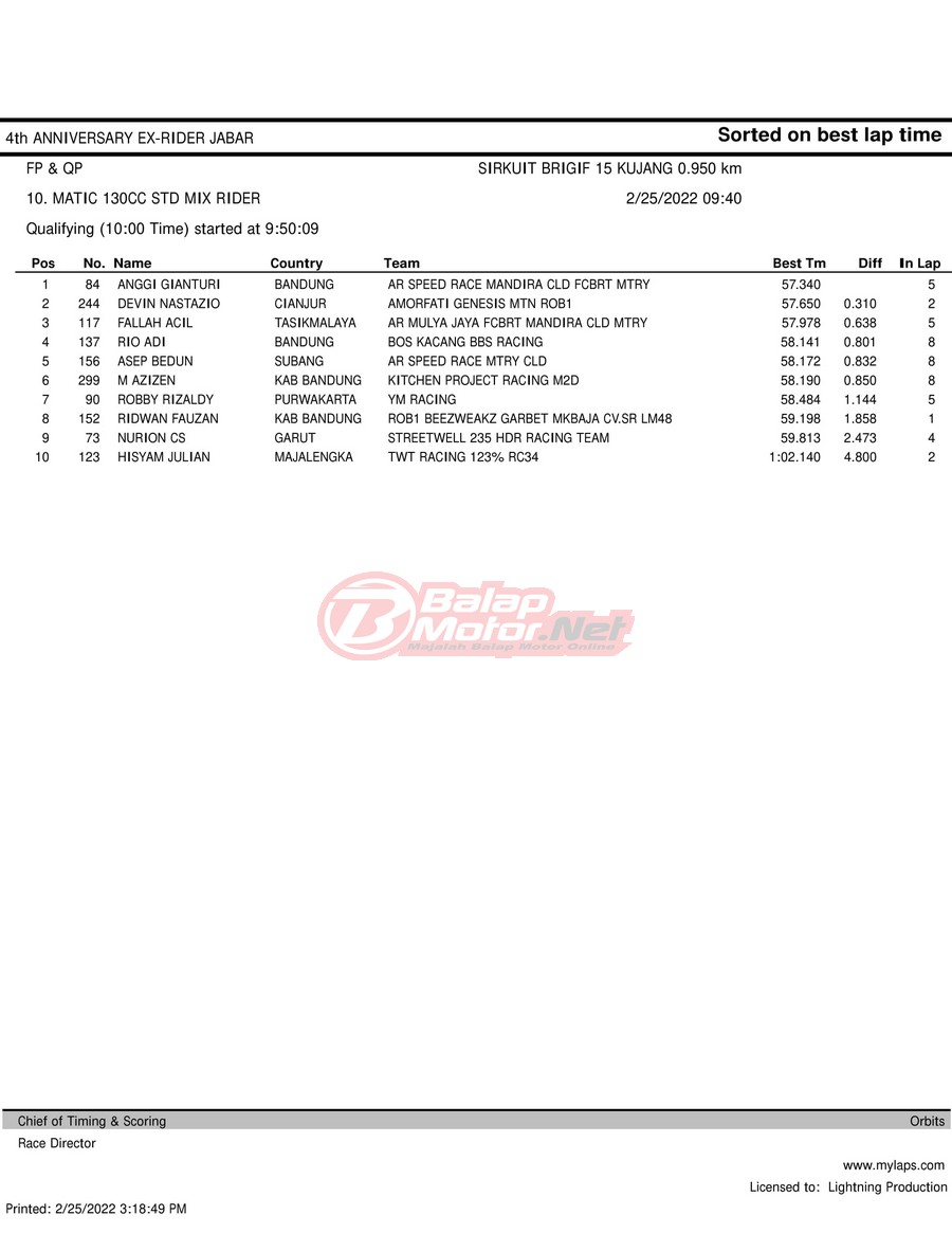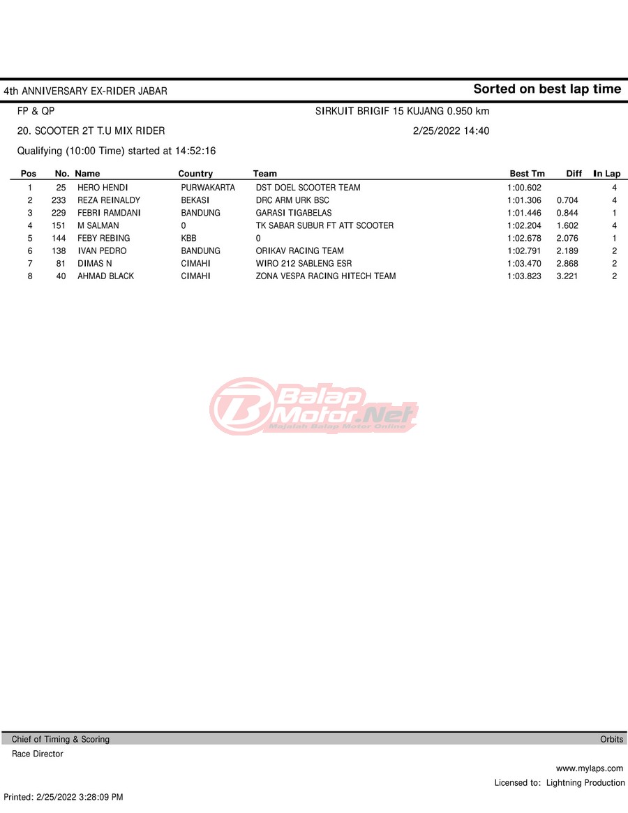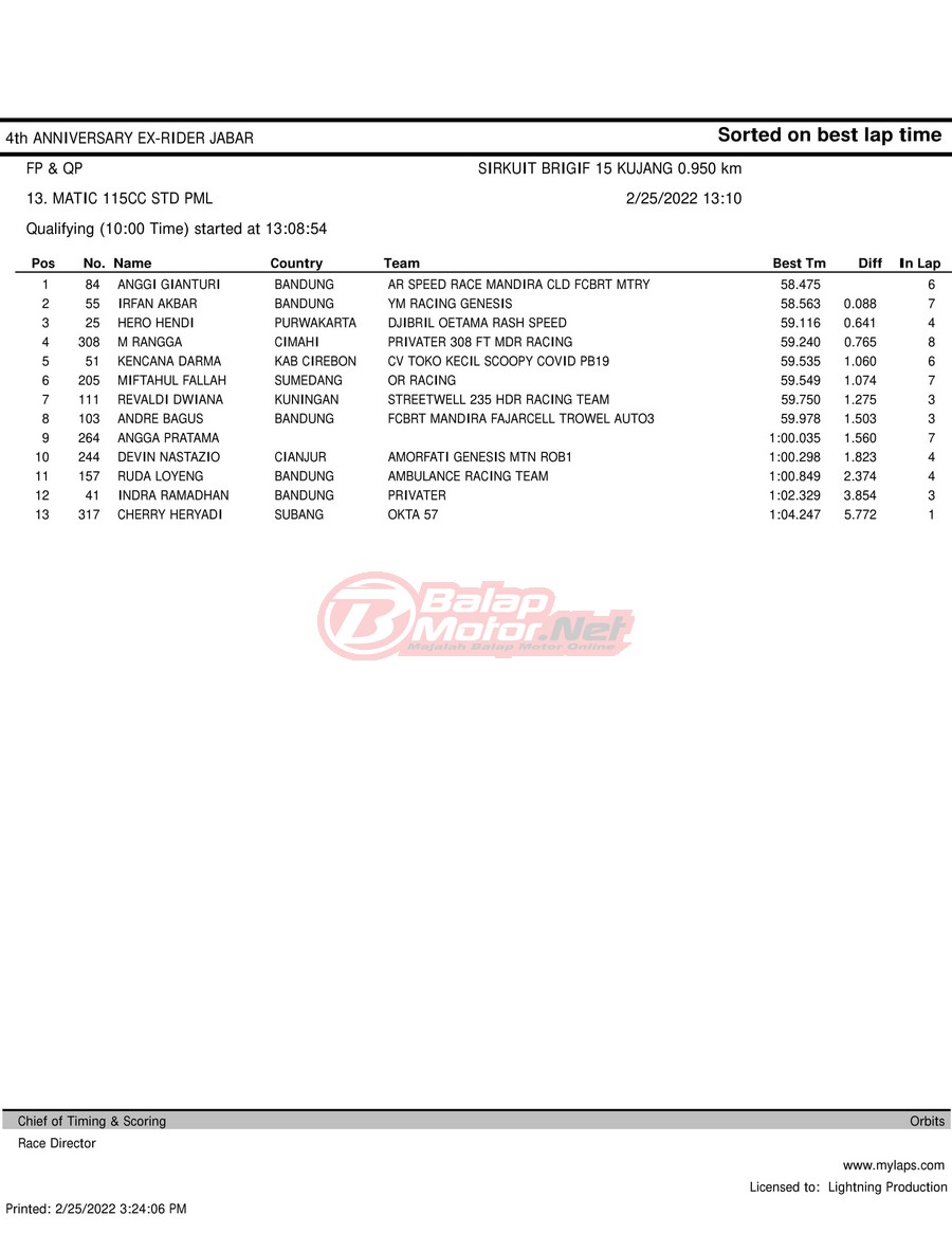 Hasil QTT Road Race Cimahi 25 Februari 2022