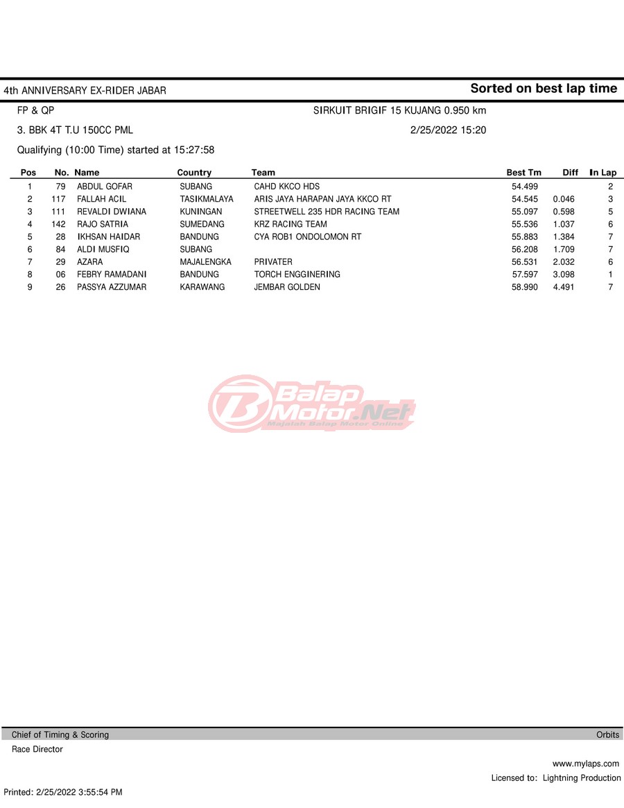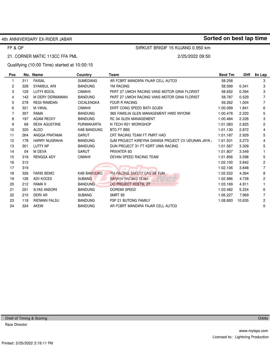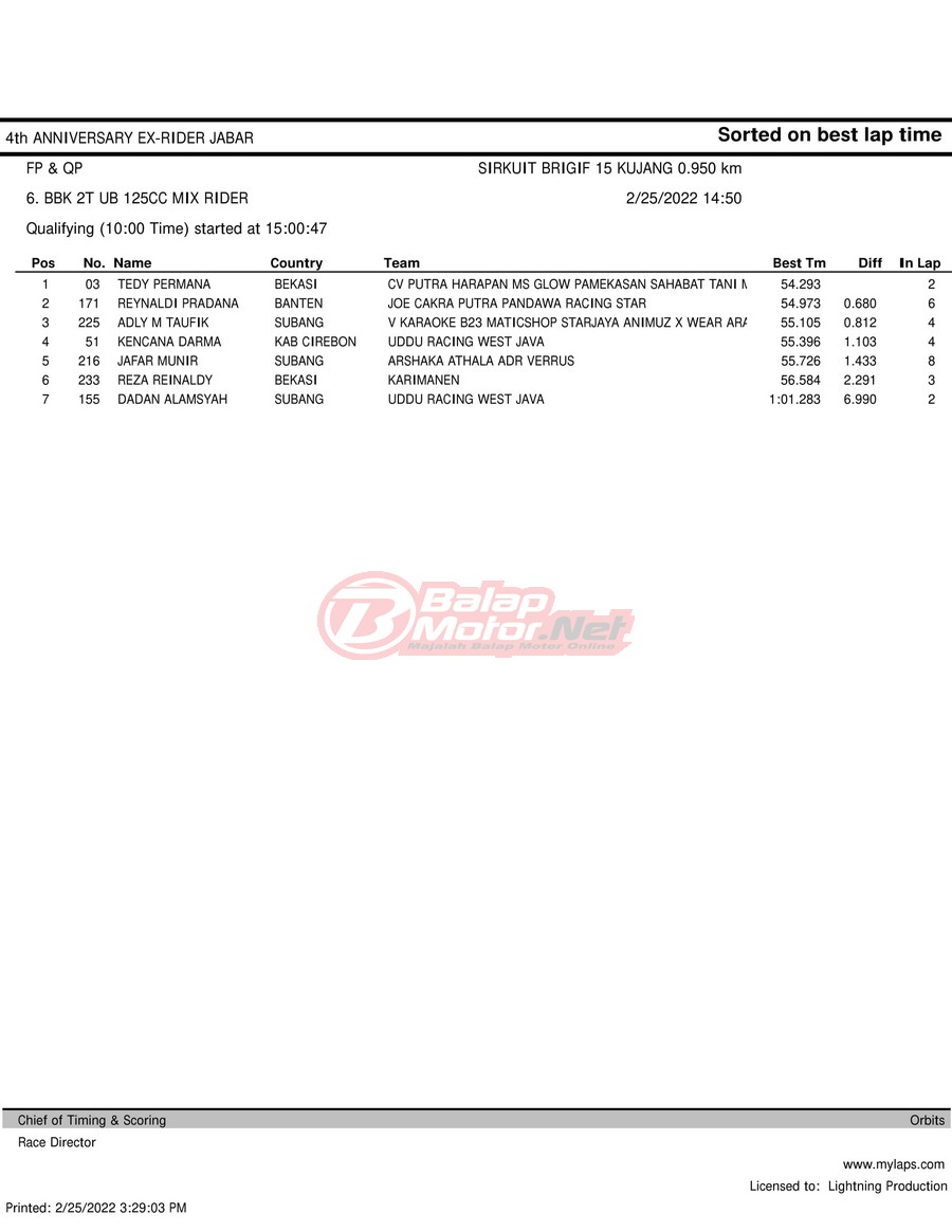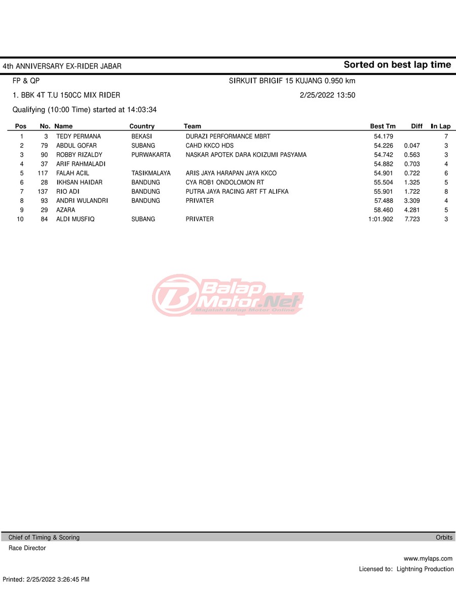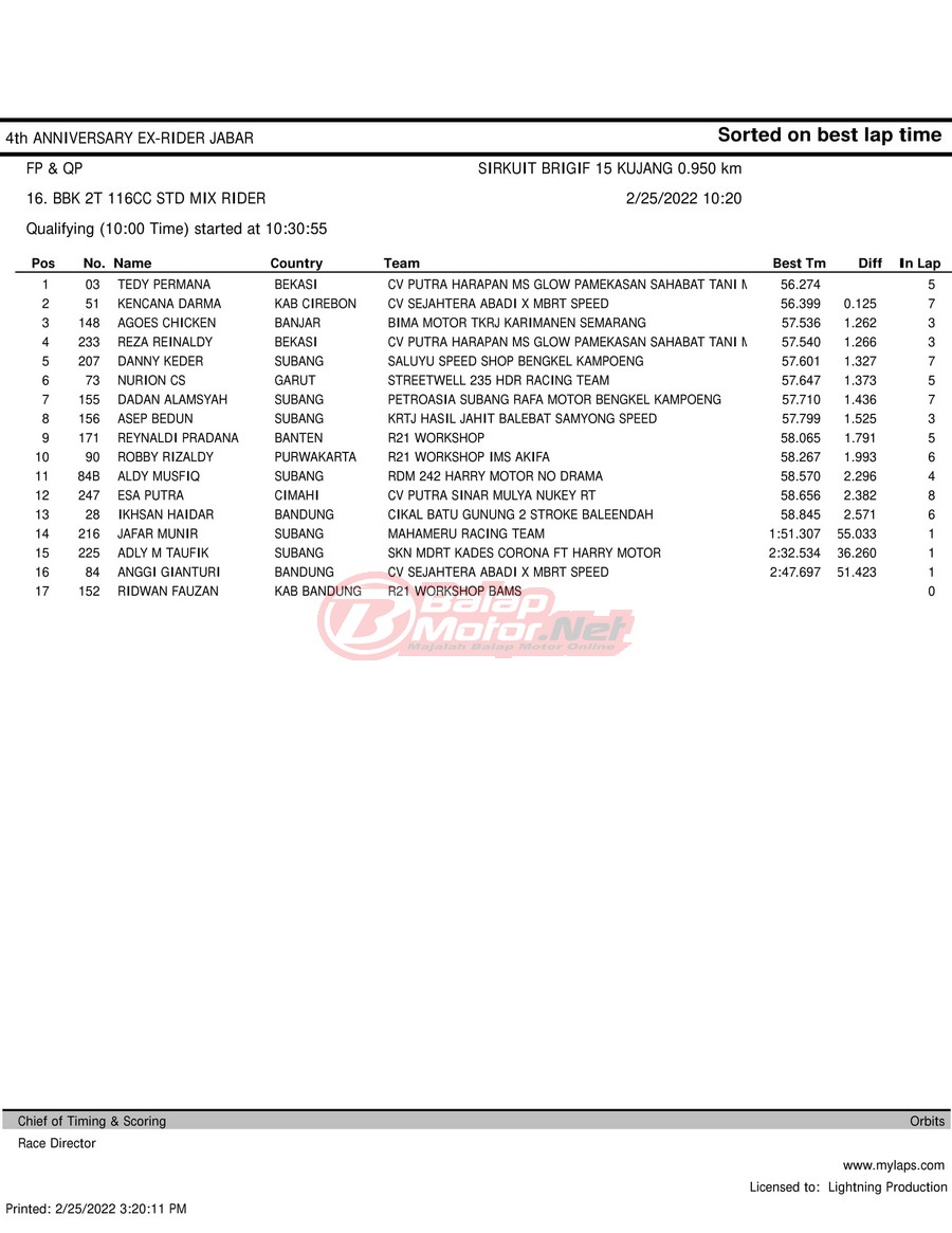 Hasil QTT Road Race Cimahi 25 Februari 2022