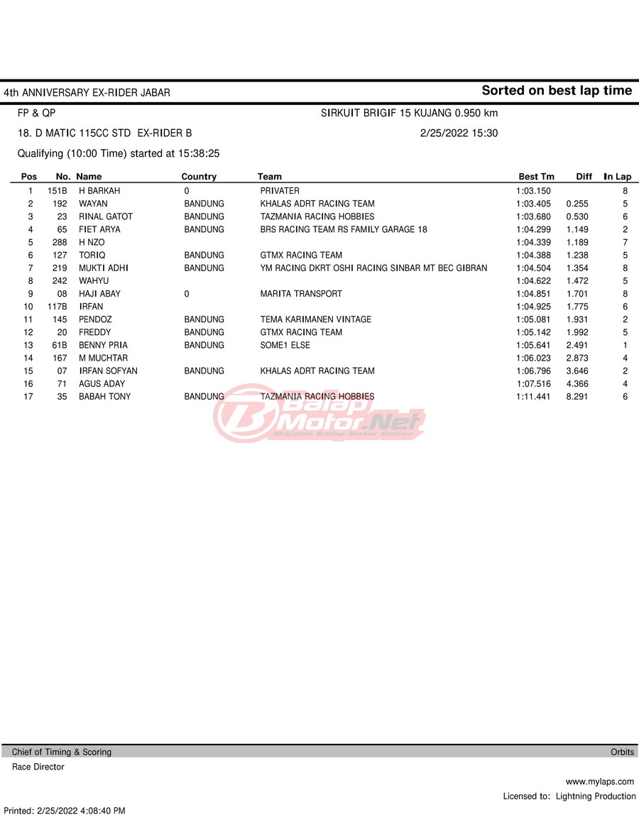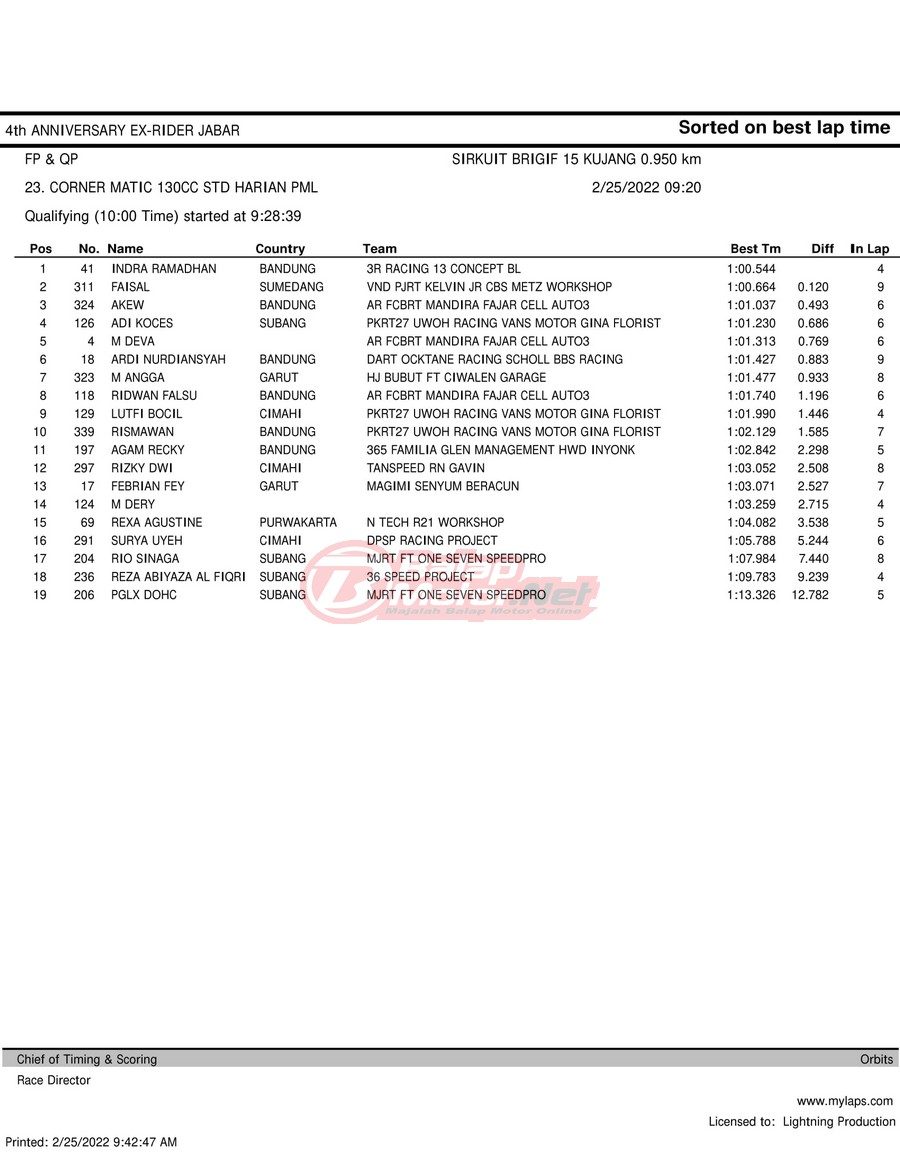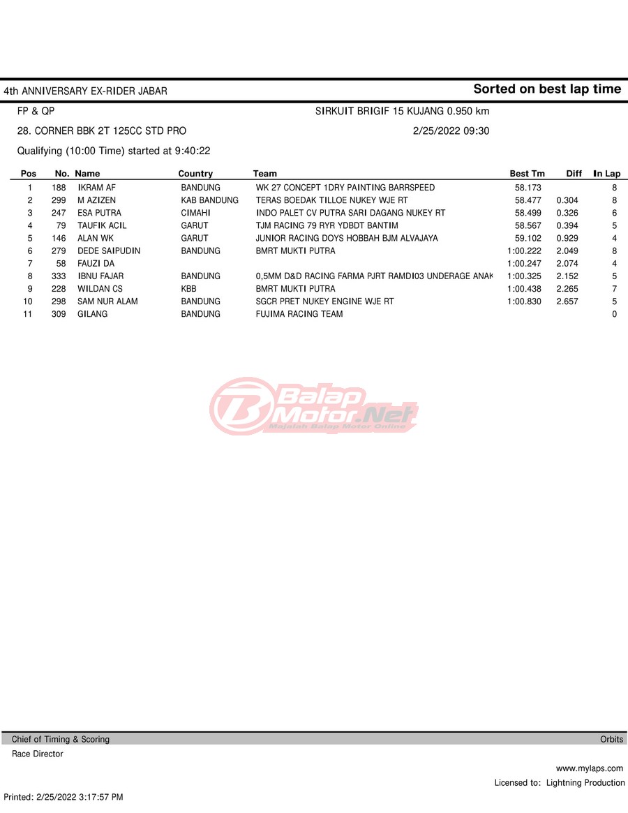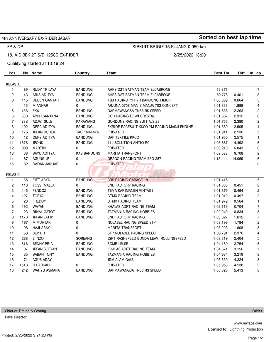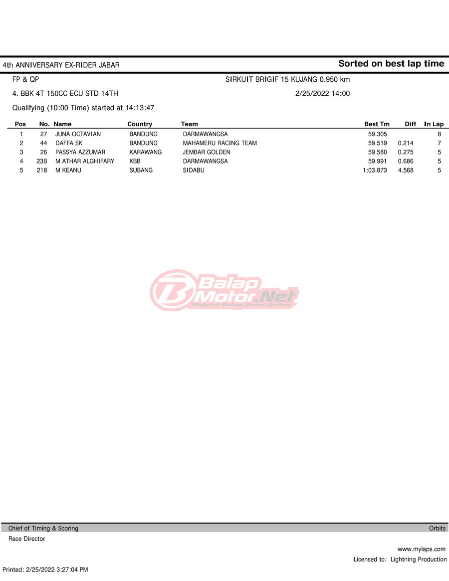 Hasil QTT Road Race Cimahi 25 Februari 2022