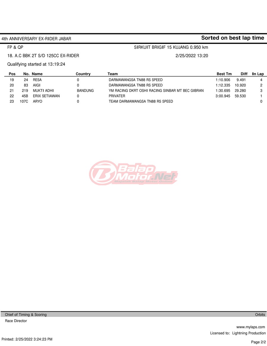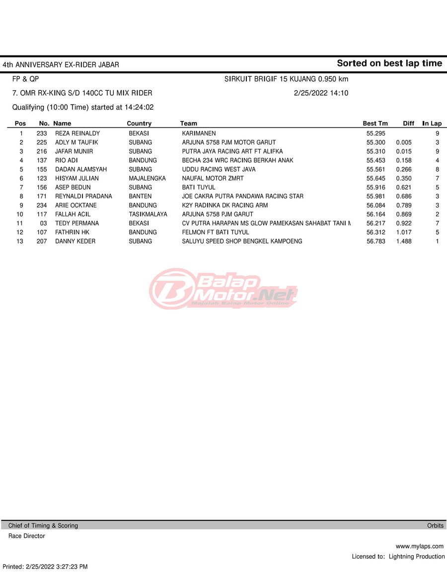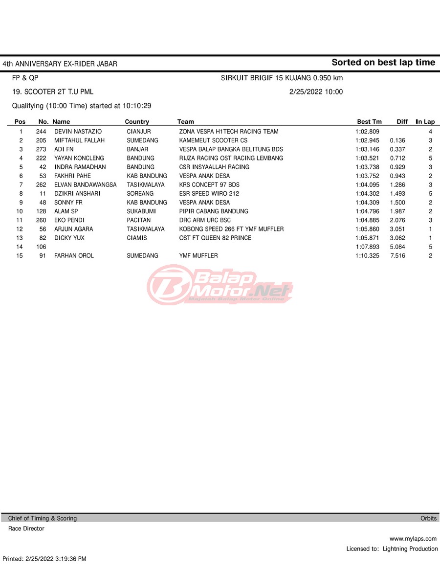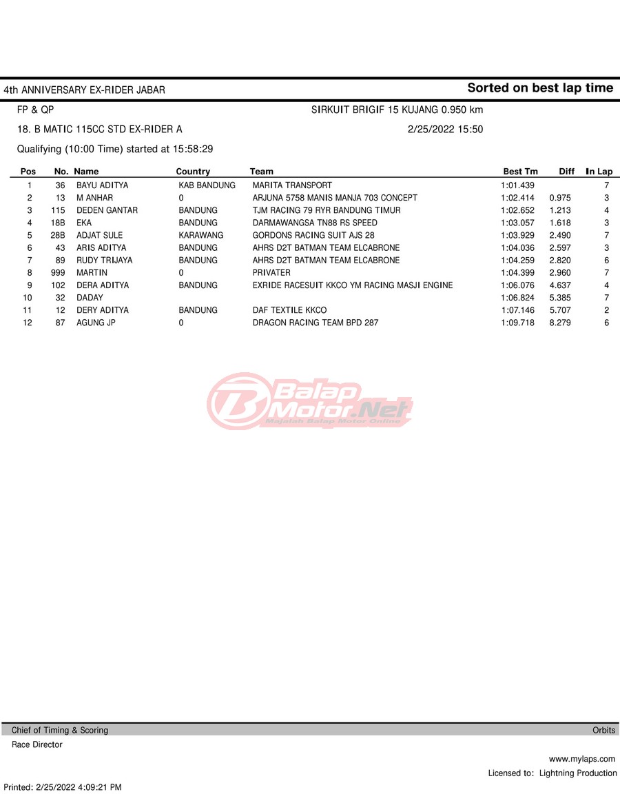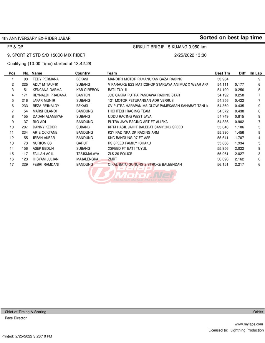 Hasil QTT Road Race Cimahi 25 Februari 2022